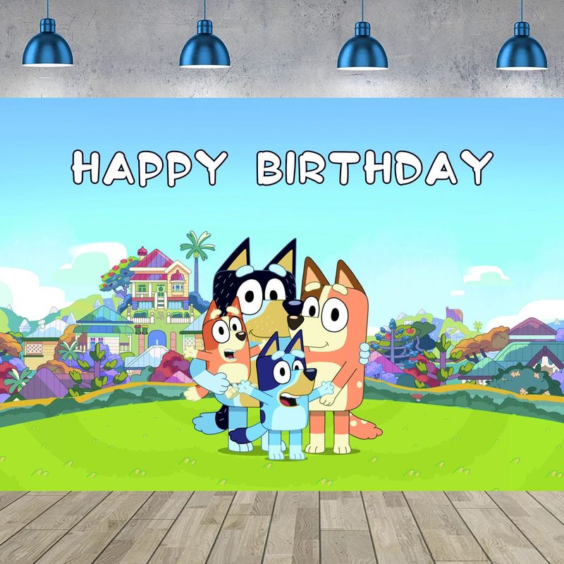 Cute Cartoon Bluey/Bingo family party Decorations Cake Disposable Paper plate set Banner Cake plate Hanging Flag Bluey Balloons