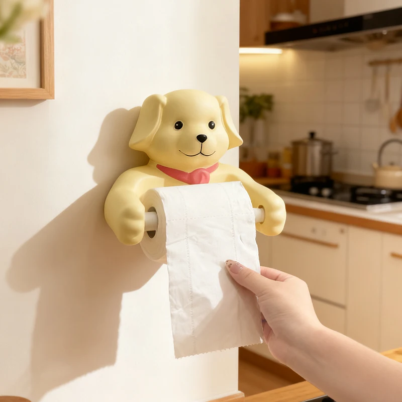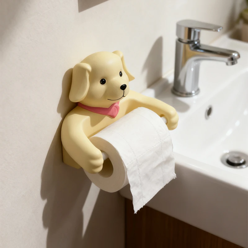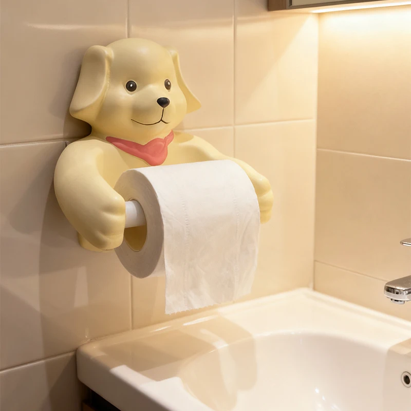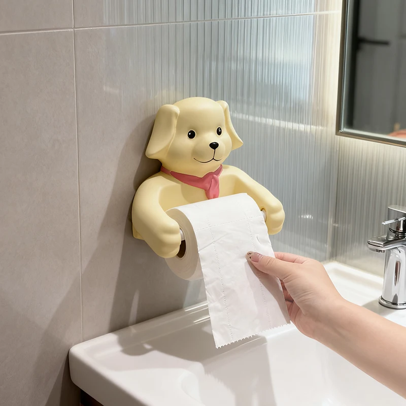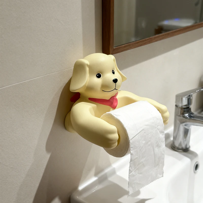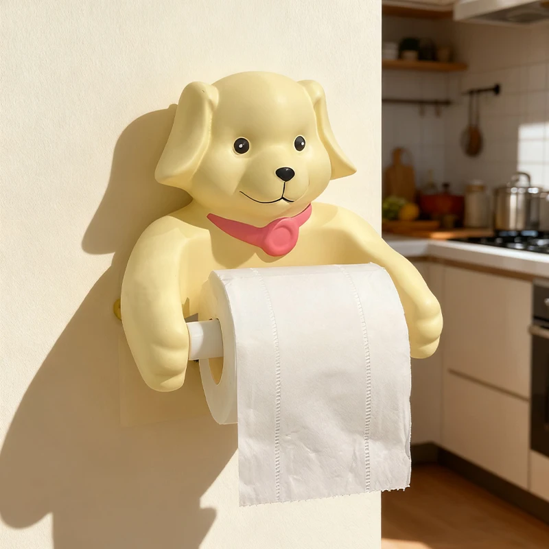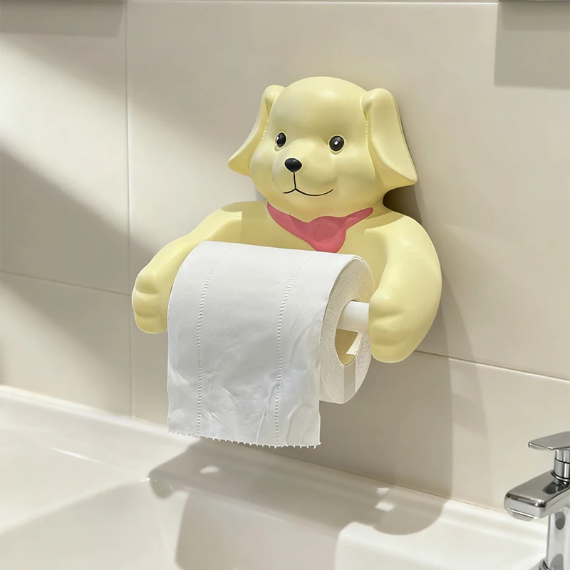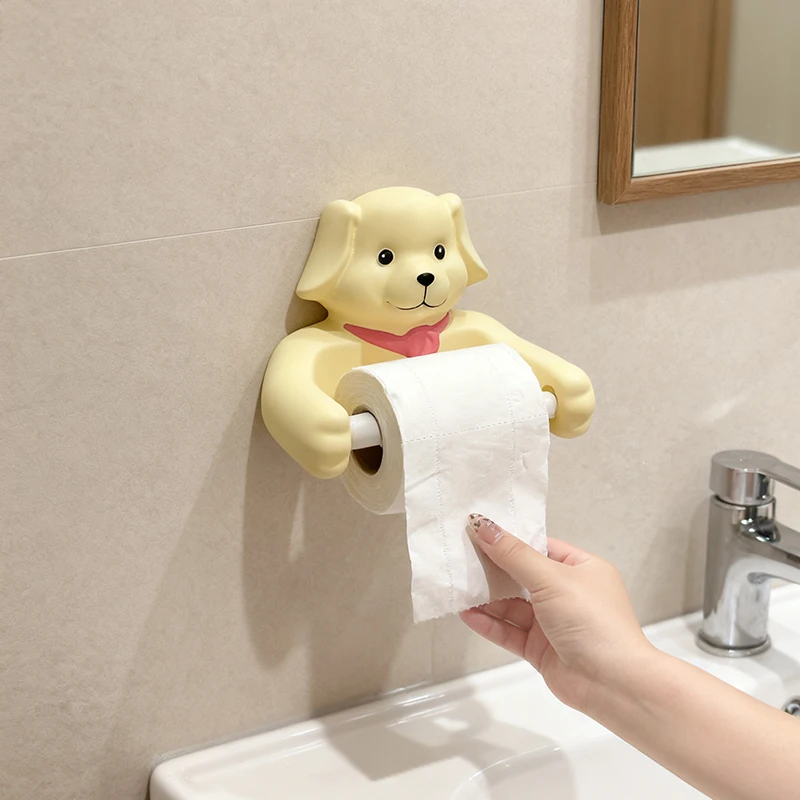 Cute Cartoon Dog Tissue Holder Funny Roll Paper Tube Storage Rack Home Toilet Bathroom No Punching Hanging Tissue Box Wall Decor