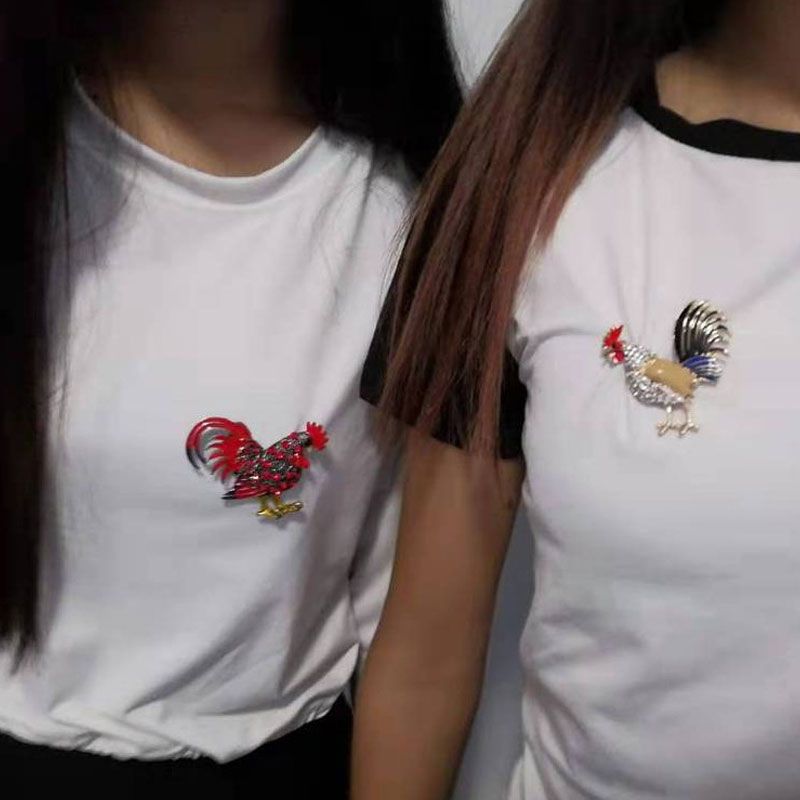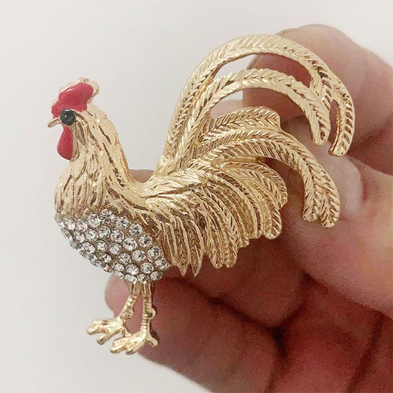 Cute Colour Rooster Brooches Pin For Women Enamel Animal Brooch Broches Crystal Cock Jewelry Pins Gift