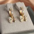 Cute Female Colorful Butterfly Round Zircon Stone Hoop Earrings Gold Color Unique Girlfriend Gifts Wedding Jewelry For Women