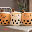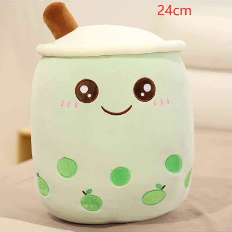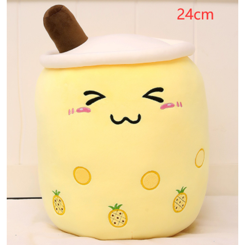 Color: milk tea pillow with white barking, milk tea pillow with brown barking, milk tea pillow with brown triangle, green fruit, pink strawberry, yellow pineapple, round eyes, squinted eyes