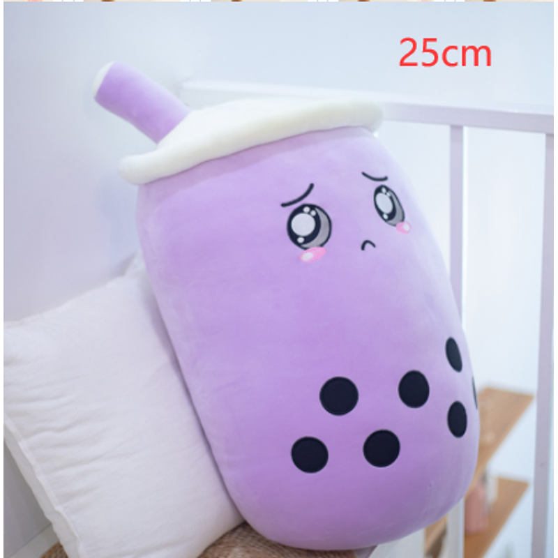 Cute Fruit Drink Plush Stuffed Soft Strawberry Milk Tea Plush Boba Tea Cup Toy Bubble Tea Pillow Cushion Kids Gift Purple 25CM
