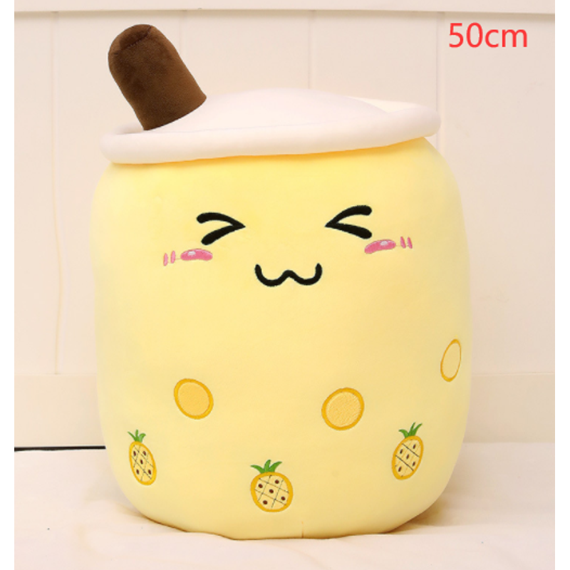 Color: milk tea pillow with white barking, milk tea pillow with brown barking, milk tea pillow with brown triangle, green fruit, pink strawberry, yellow pineapple, round eyes, squinted eyes