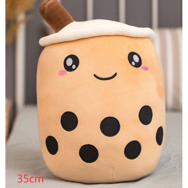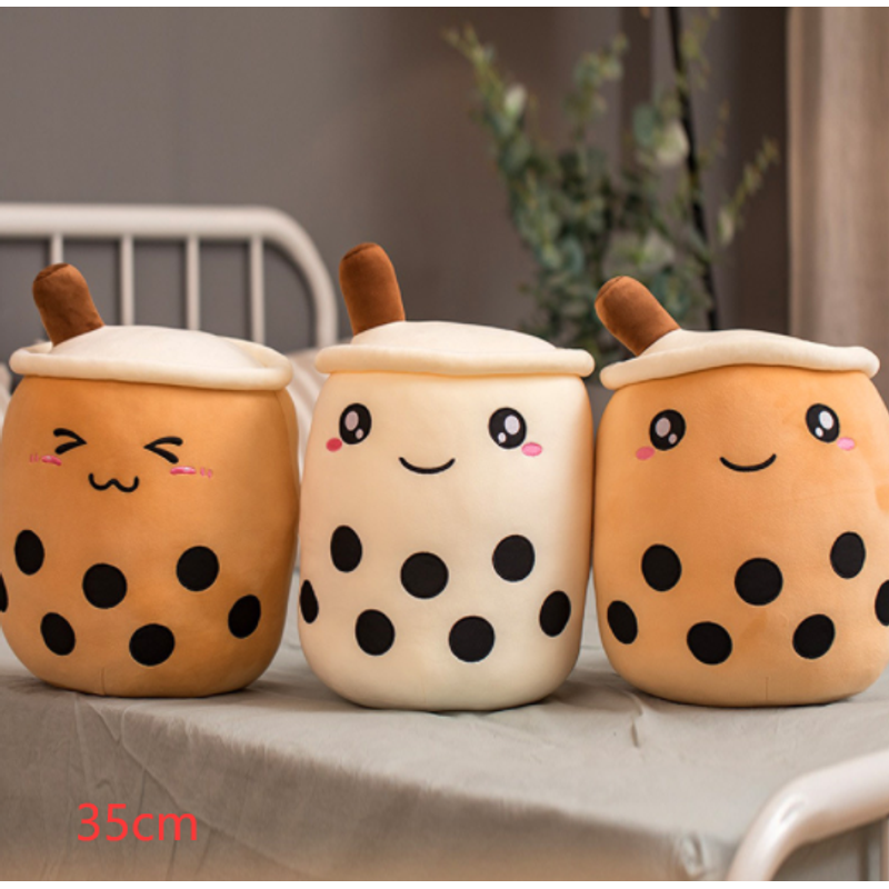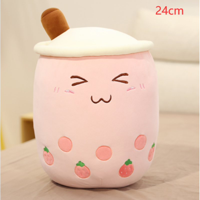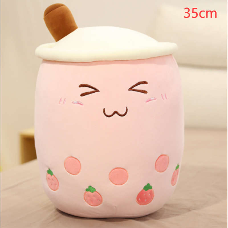 Cute Fruit Drink Plush Stuffed Soft Strawberry Milk Tea Plush Boba Tea Cup Toy Bubble Tea Pillow Cushion Kids Gift White 35CM