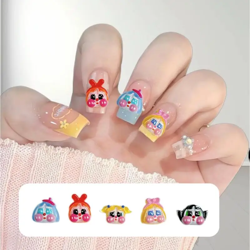 Cute Funny Crying Doll Nail Charms Cartoon Painted Girl Head Resin Nail Art Decorations Handmade DIY Phone Case Nail Accessories