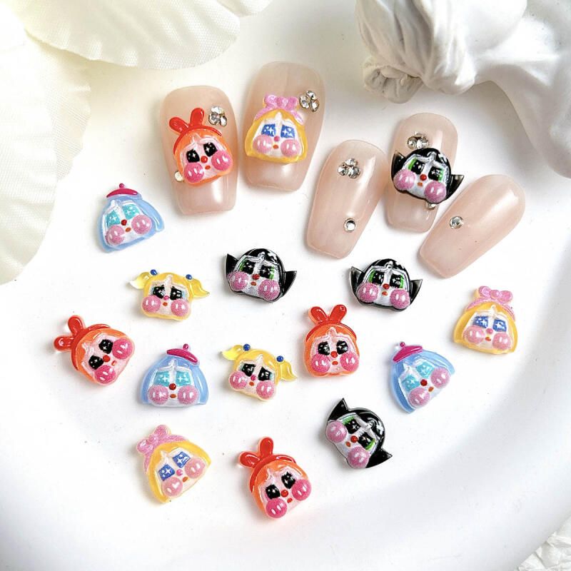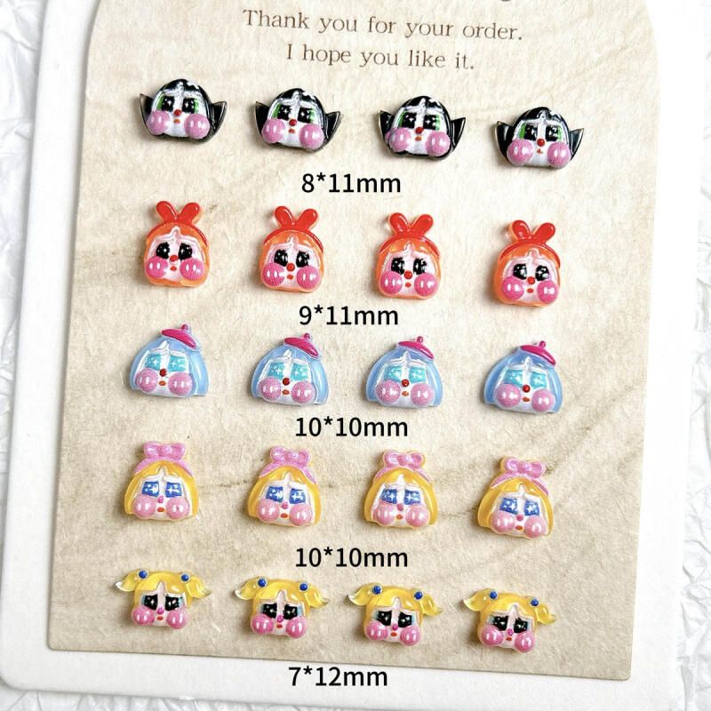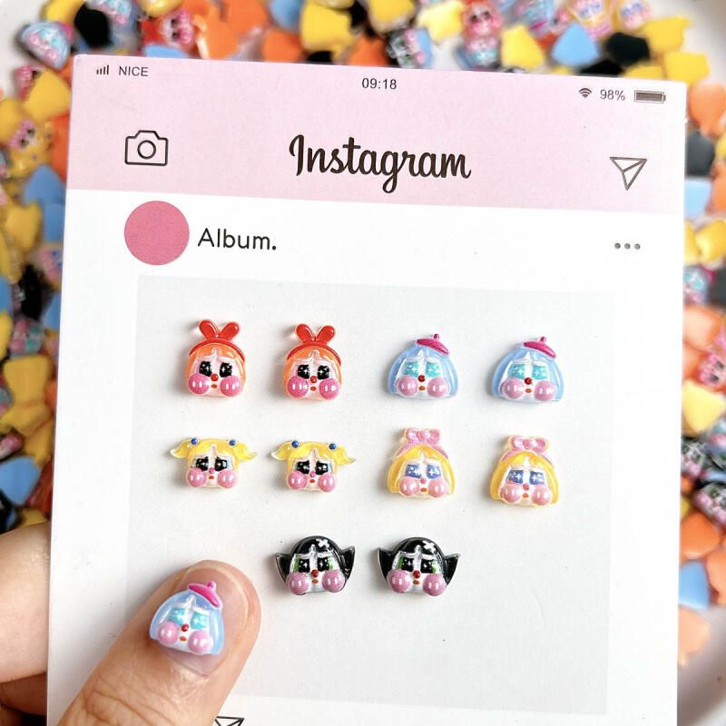 Cute Funny Crying Doll Nail Charms Cartoon Painted Girl Head Resin Nail Art Decorations Handmade DIY Phone Case Nail Accessories
