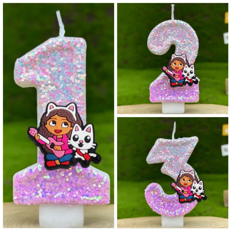 Cute Gabbys Dollhouse Digital Candle Number 0-9 Kids Birthday Cake Decoration Supplies Cartoon Anime Party Accessories Supplies