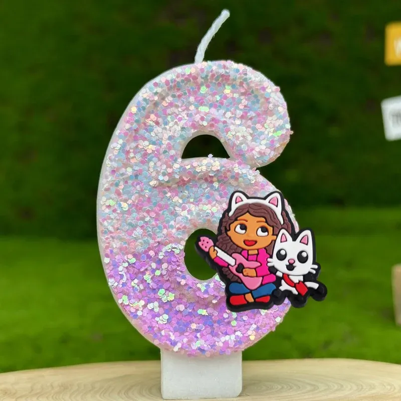 Cute Gabbys Dollhouse Digital Candle Number 0-9 Kids Birthday Cake Decoration Supplies Cartoon Anime Party Accessories Supplies