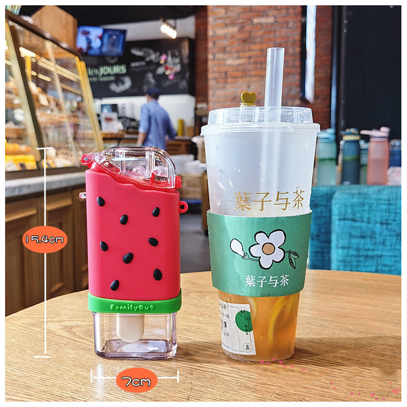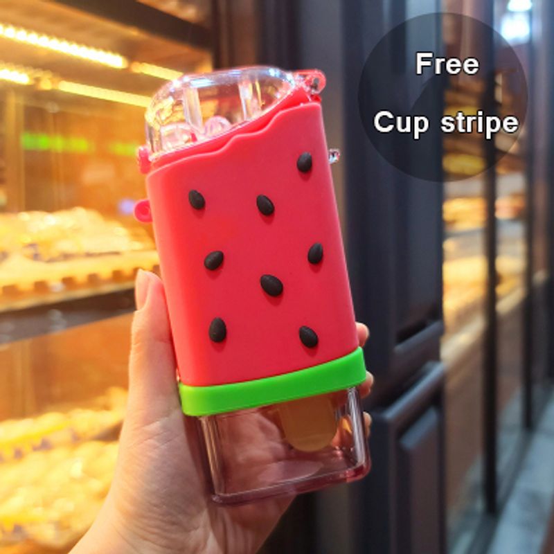 Cute Ice Cream Plastic Water Bottle With Straw Strap Popsicle Water Bottle Watermelon Kettle Leakproof Tritan Bottle BPA Free