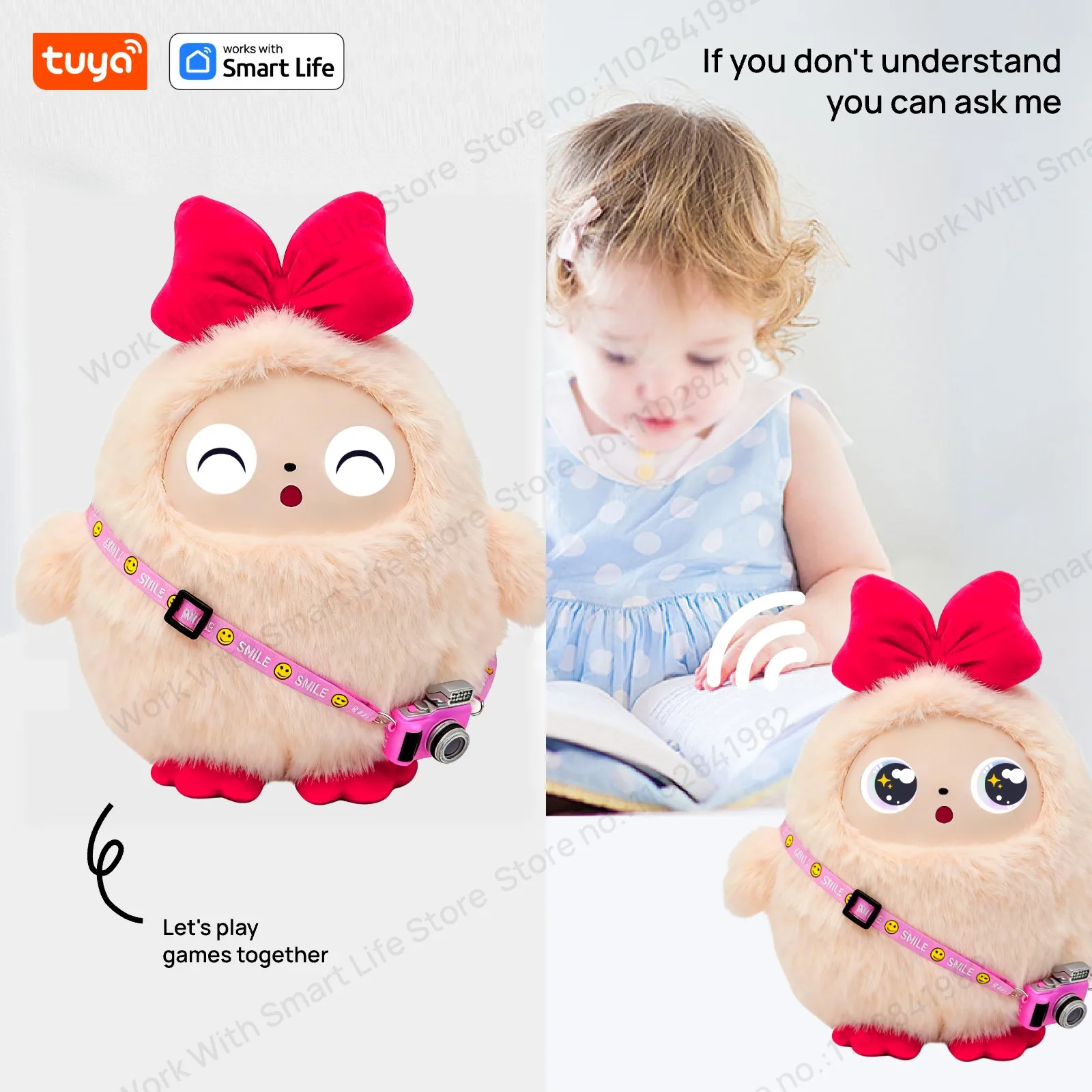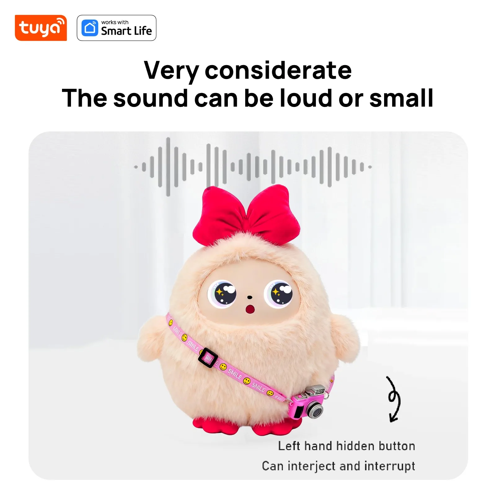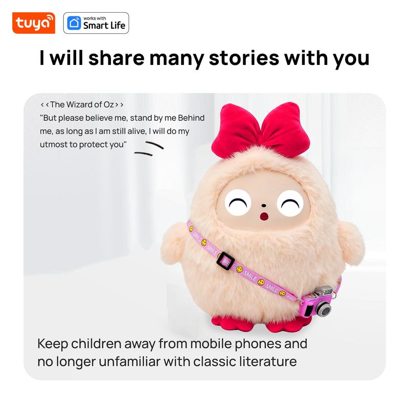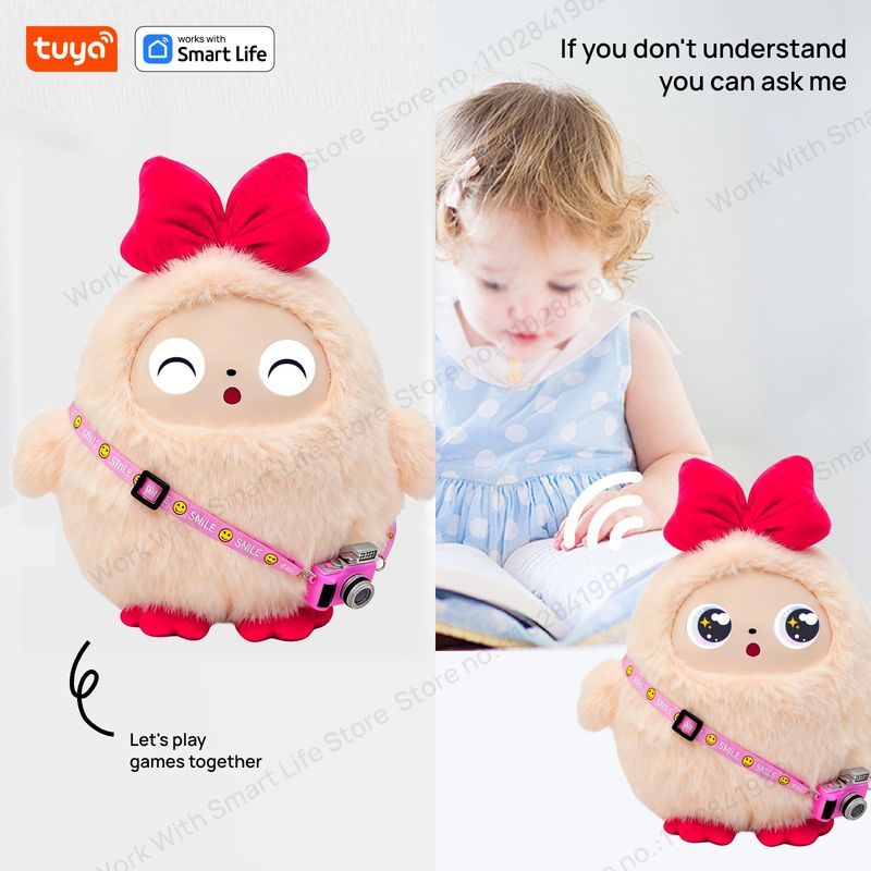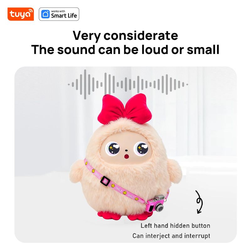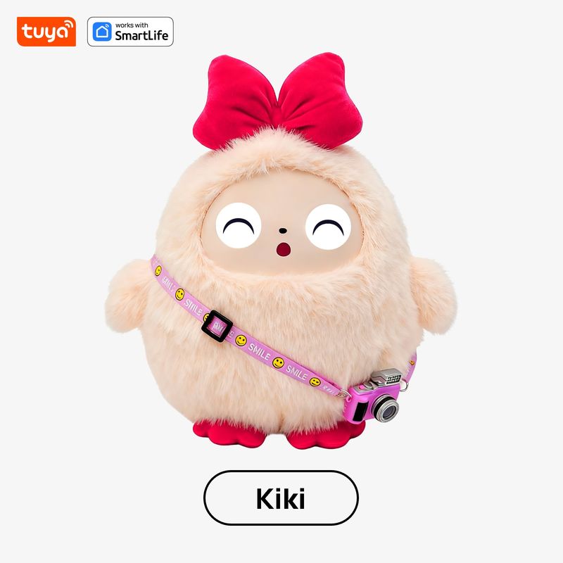 Cute Kiki-AI Plush Toy W/Smart Voice&LED Eyes,Interactive Companion ReadyRechargeable E-Pet open up fun life W/Tuya App-Pink