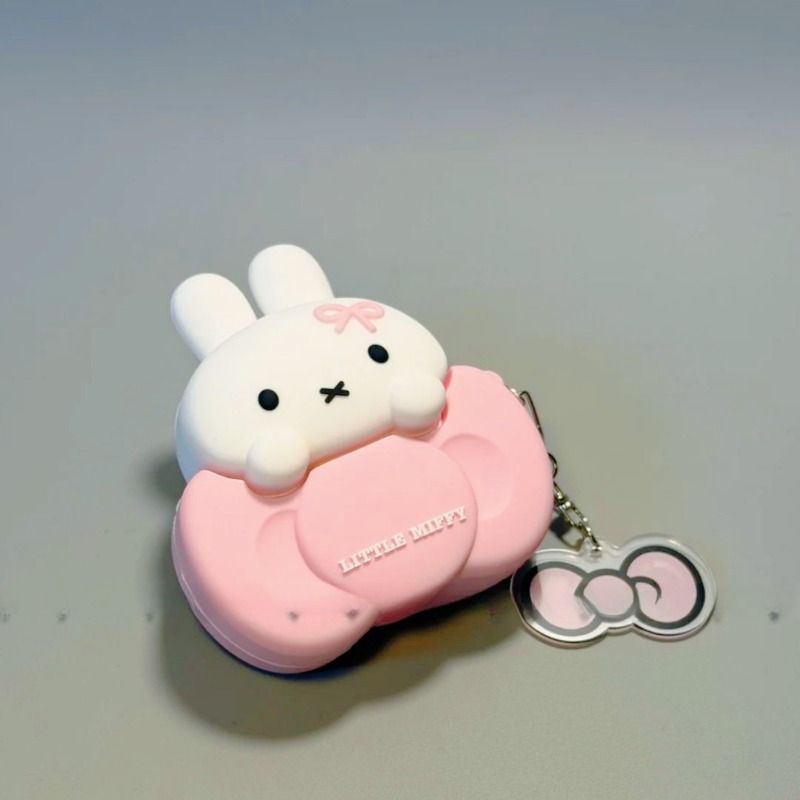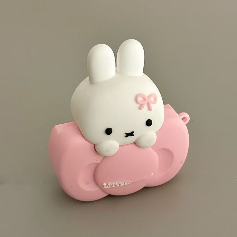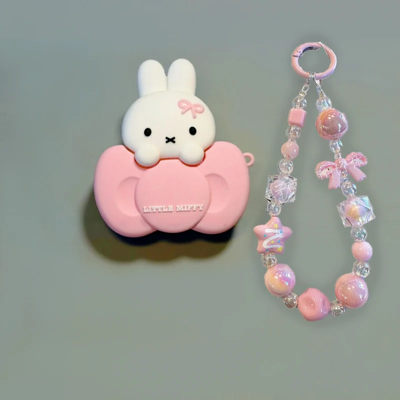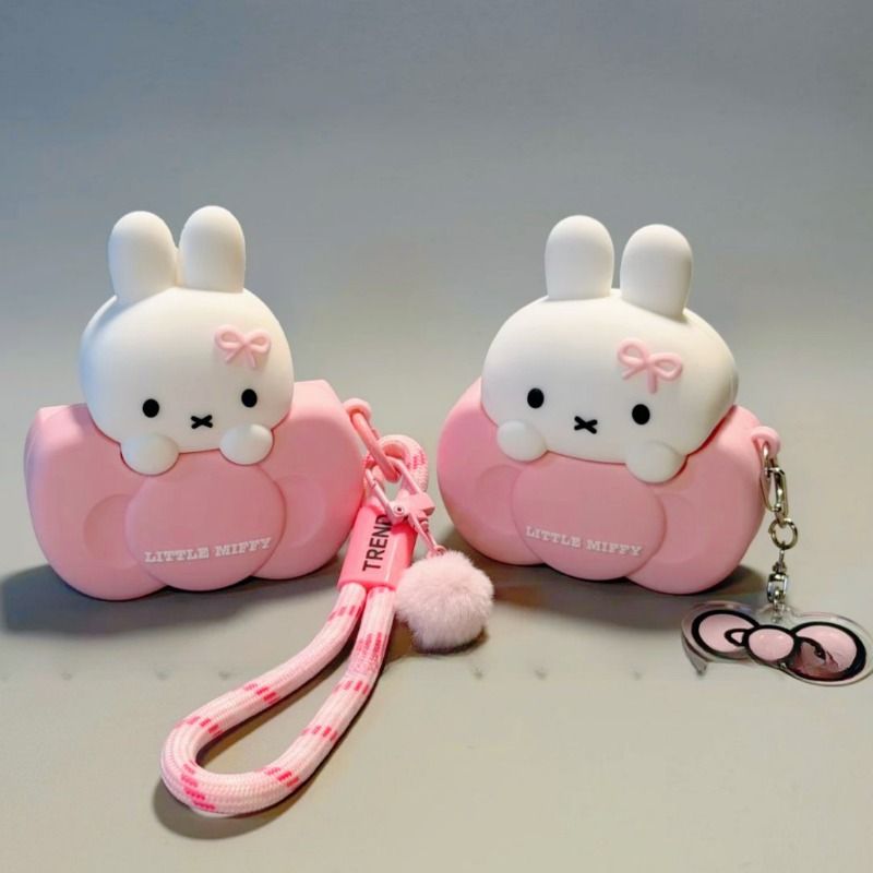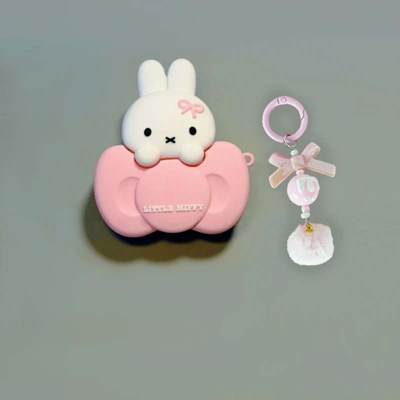 Cute Miffy Bunny Perched on Bow Silicone Earphone Protective Case for AirPods Pro3&4 Kawaii Design Shockproof Detachable Cover