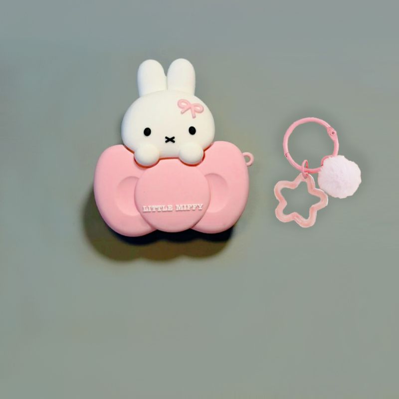 Cute Miffy Bunny Perched on Bow Silicone Earphone Protective Case for AirPods Pro3&4 Kawaii Design Shockproof Detachable Cover