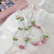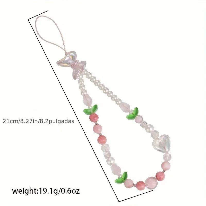 Cute Peach Beaded Mobile Phone Charm Strap Chain, Women Sweet Girls Jewelry, Pearl Cellphone Flower Lanyard for iPhone Keychain