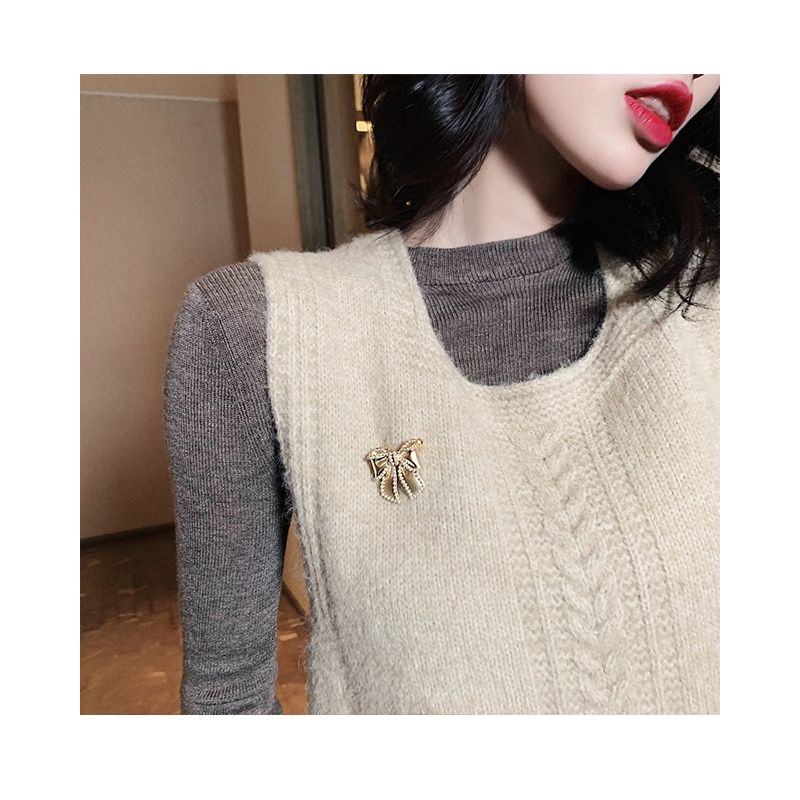 Cute Pearl Bow Brooch Small Sweater Exquisite Pearl Decoration Brooches Pin For Wedding Woman