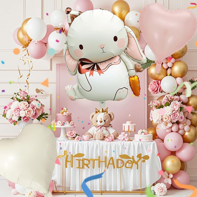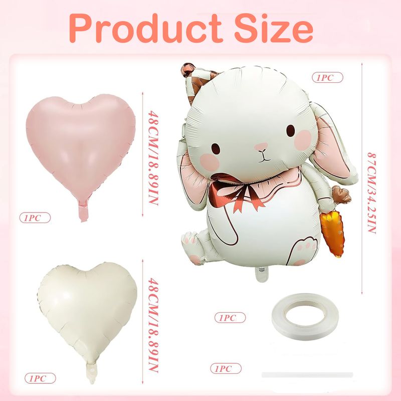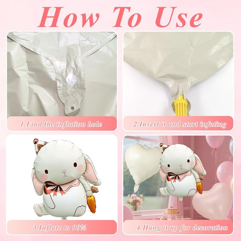 【Include】Foil bunny balloon, 1 cream heart and 1 pink heart, and 10 meters ribbon with straw. Colorful decorations for Easter and children's birthdays.