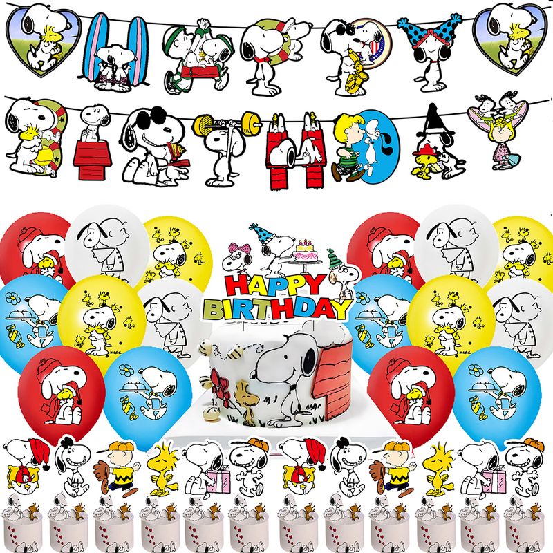 Cute Snoopy Birthday Party cutlery plate Disposable Banner Cake Topper Hanging Flag Snoopy Dog Balloons Birthday Decorations