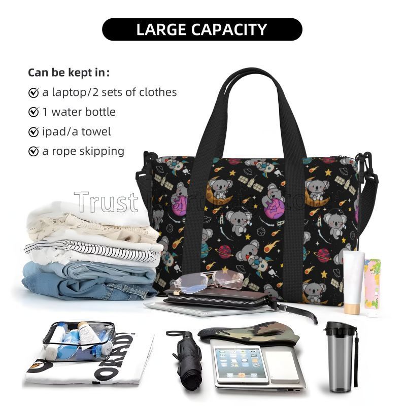 Cute Space Koalas Travel Duffel Bags Lightweight Waterproof Weekender Overnight Bag Foldable Carry on Tote Bags Sport Gym Bag