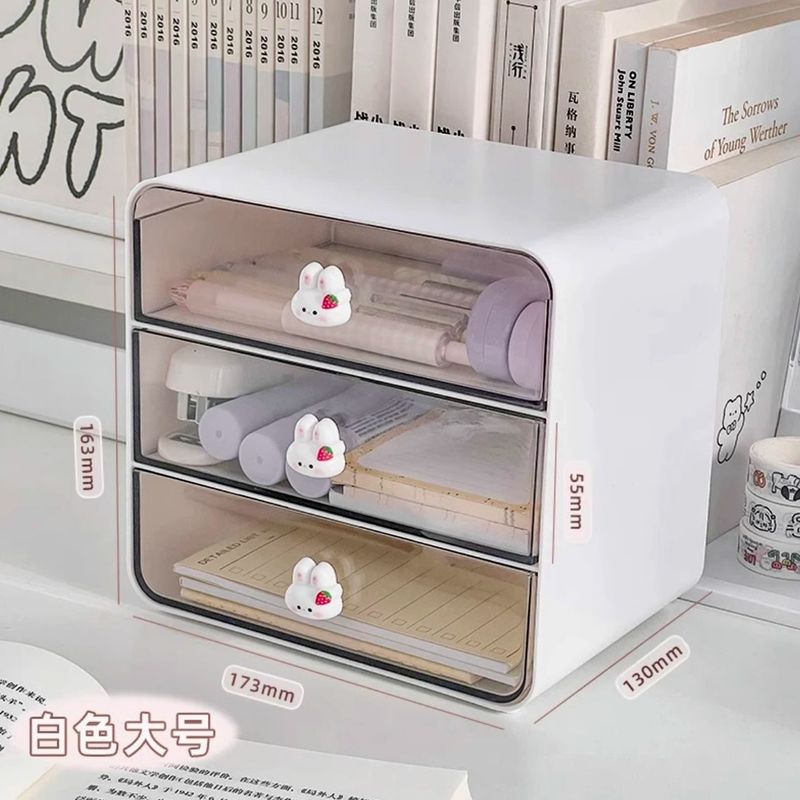 Cute Transparent Drawer Style Storage Box Stationery Organizer for Student Desk Office Miscellaneous Items Plastic Box