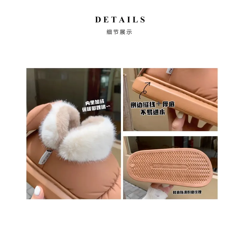 Cute Warm Ankle Boots Winter Women's Bow Warmth Plush Bow Cotton Shoes 2024 New Waterproof Down Cloth Short Barrel Snow Boots