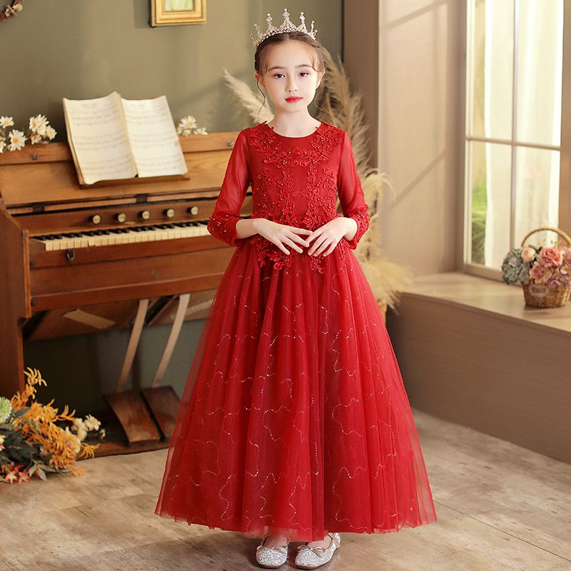CW683 Princess Dress Girls' Pengpeng Yarn Spring/Summer New Long Sleeve Fashionable Children's Performance