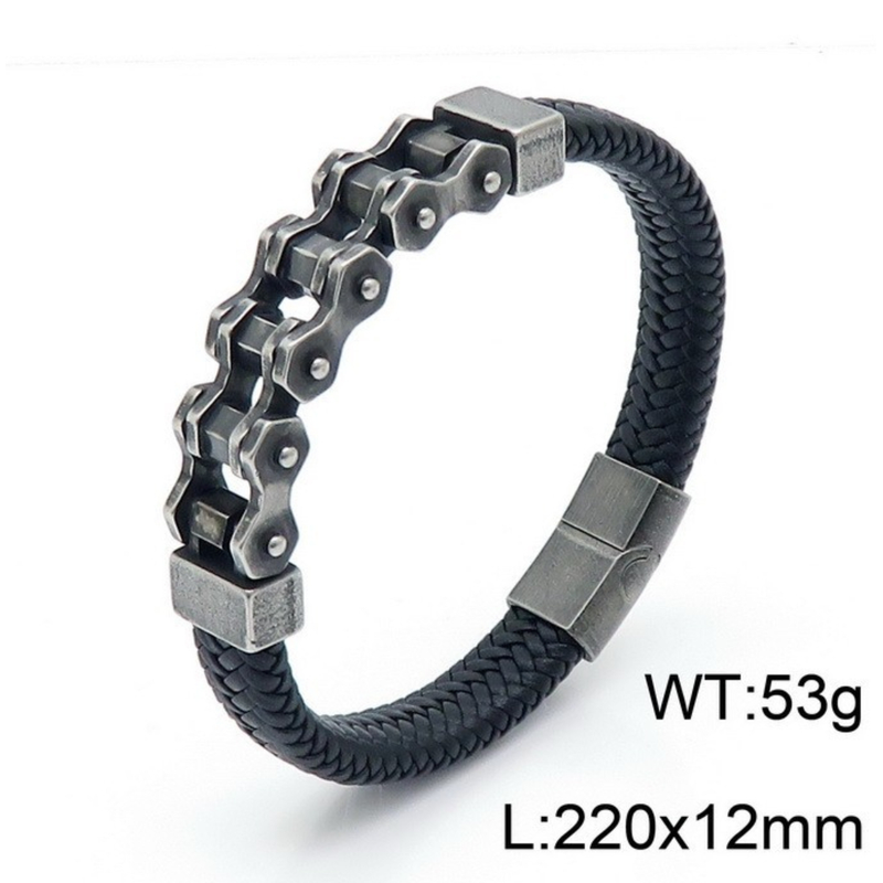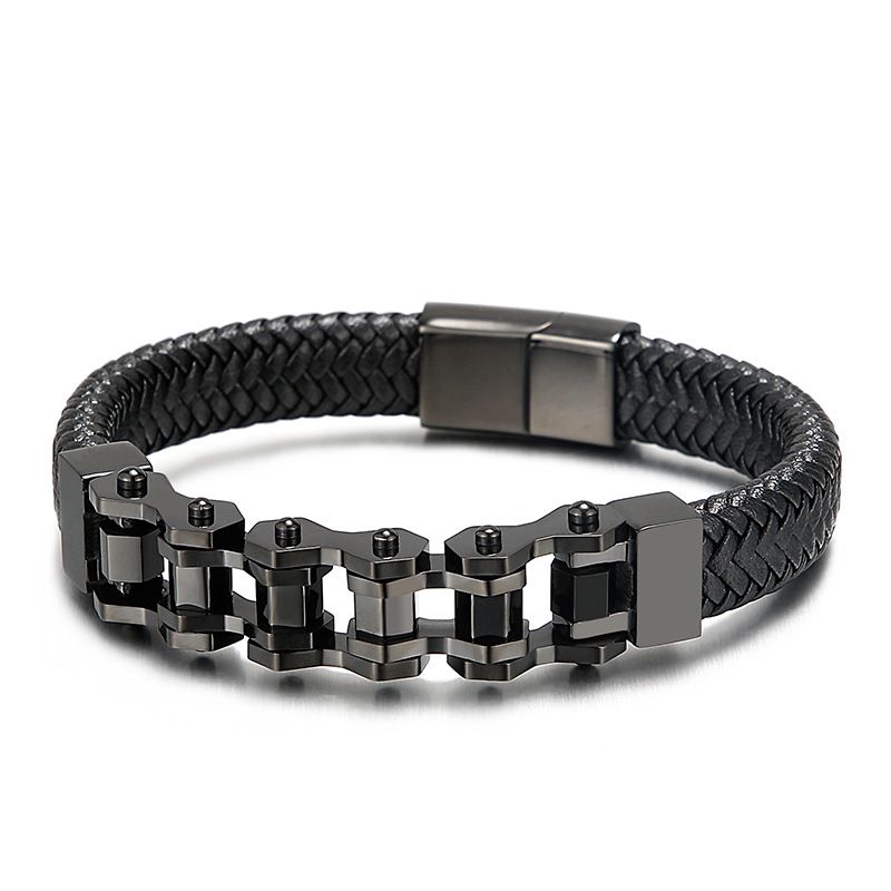European and American cross - border stainless steel geometric motorcycle bracelet cowhide braided leather bracelet simple versatile