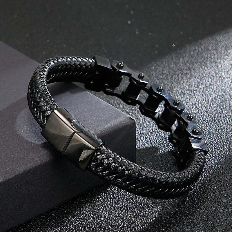 European and American cross - border stainless steel geometric motorcycle bracelet cowhide braided leather bracelet simple versatile