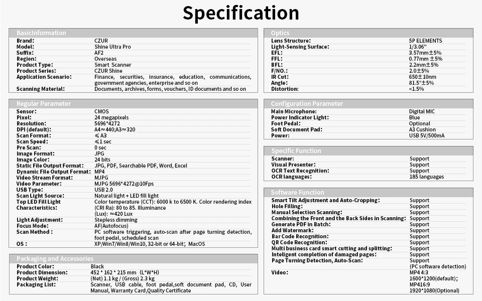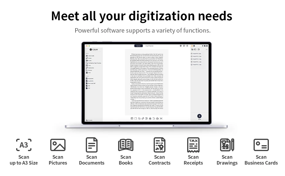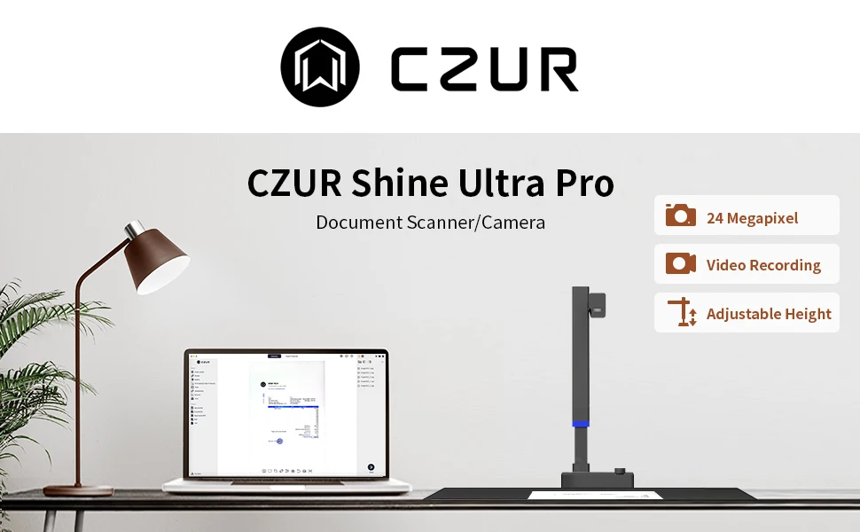 CZUR Shine Ultra Pro Book Scanner, 24MP Document Scanner, Portable USB Document Camera, Scan Max A3 Format w/ Adjustable Height