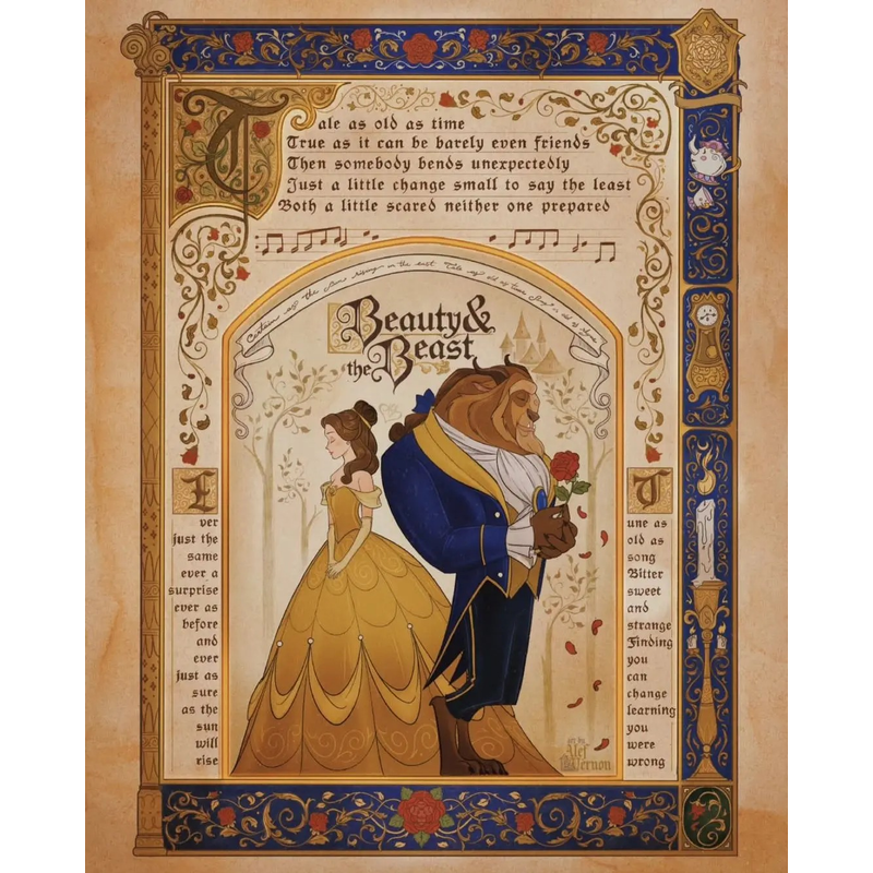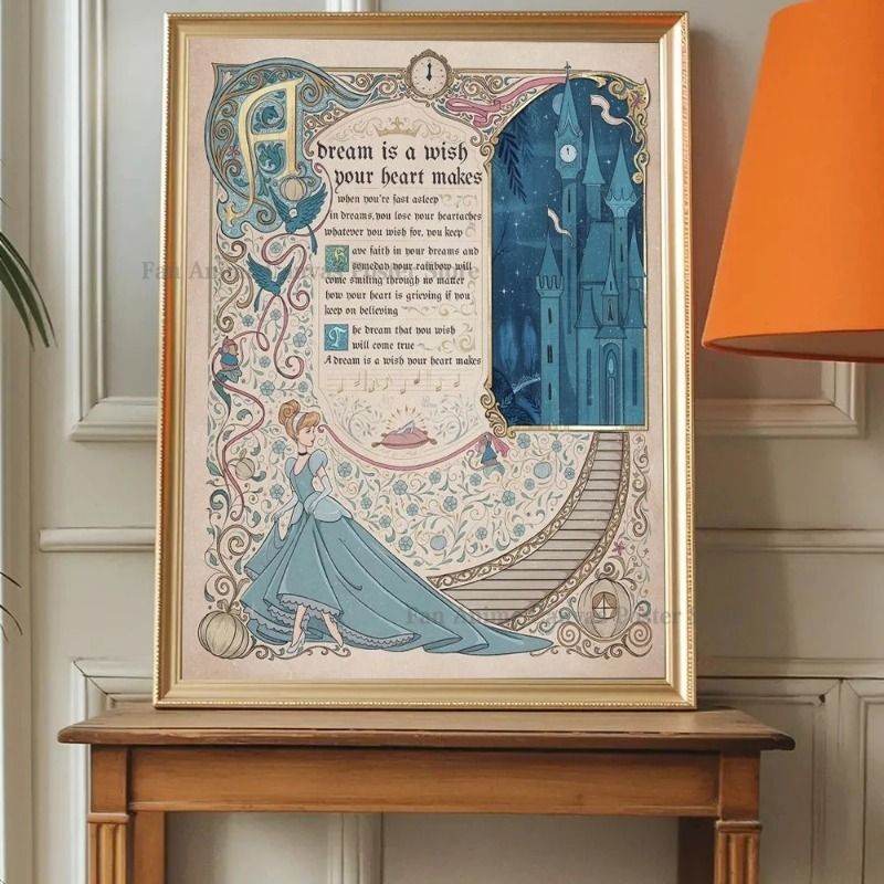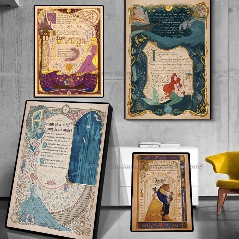 D-Disney Princess Poster Animation The Little Mermaid Ariel Beauty and The Beast Poster Decorative Painting Mural