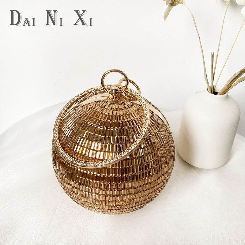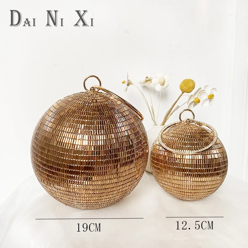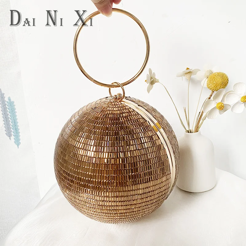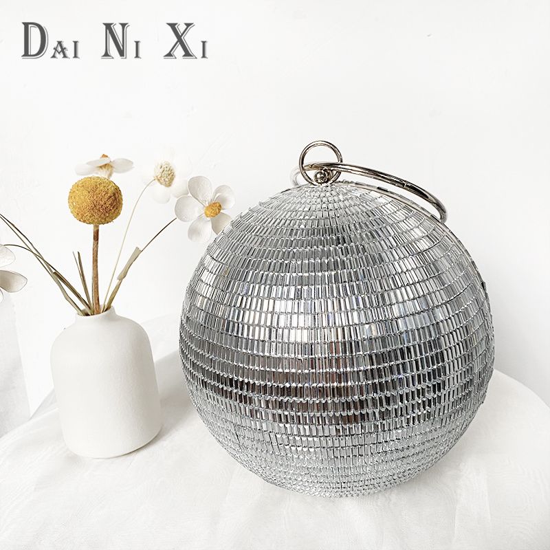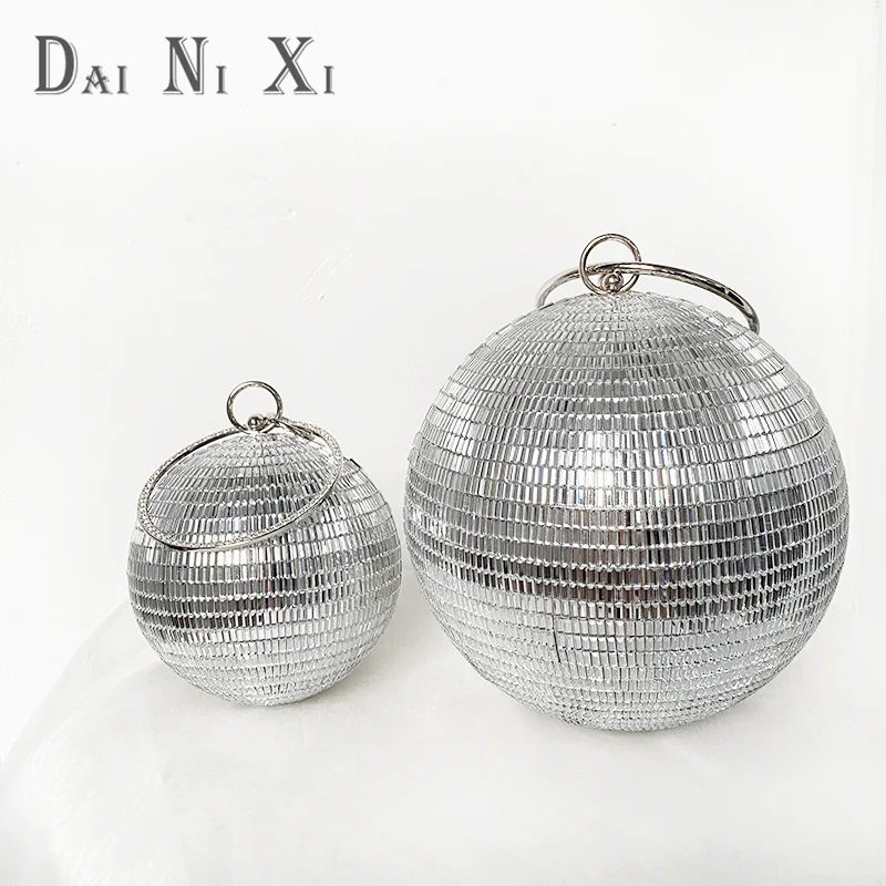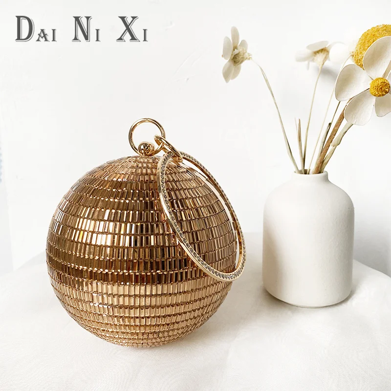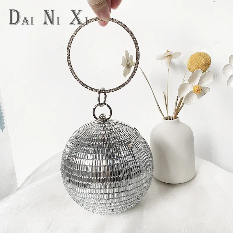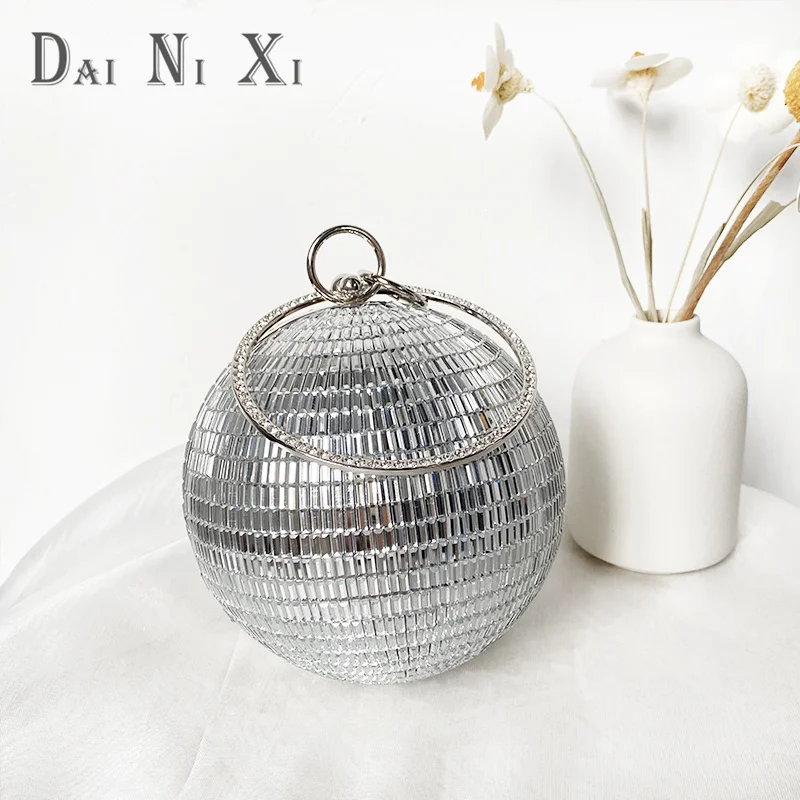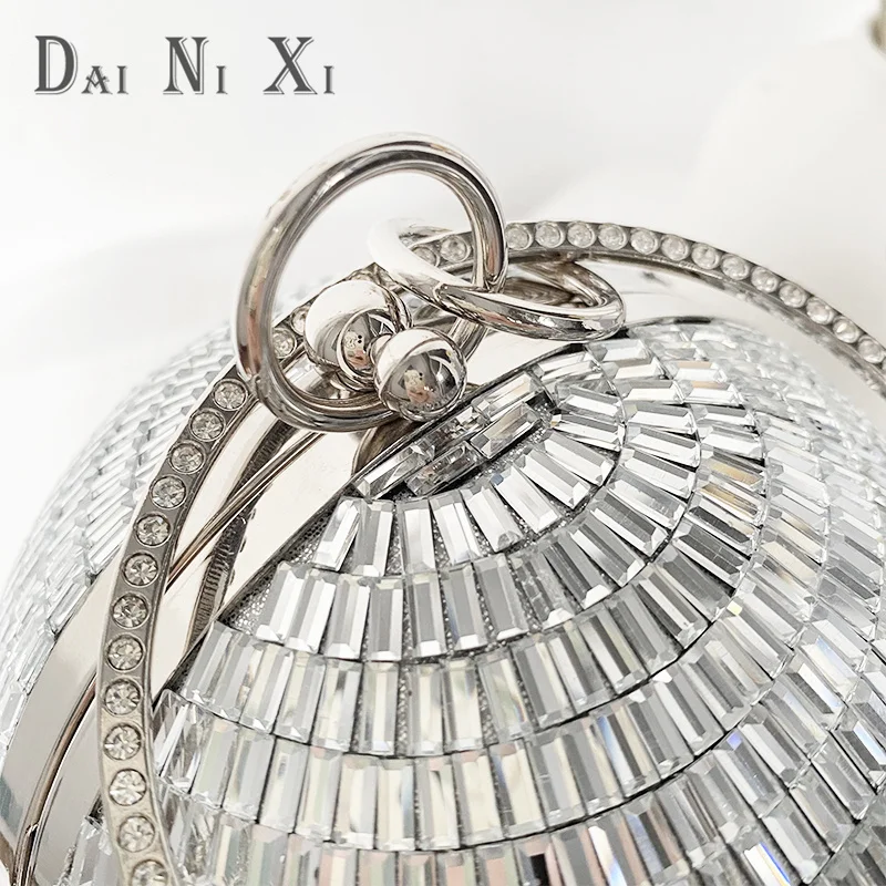 Dai Ni Xi Fashion Shinny Diamond Clutch Bling Ball Handbag and Purse Women Chic Trendy Glass Rhinestone Round Evening Bag