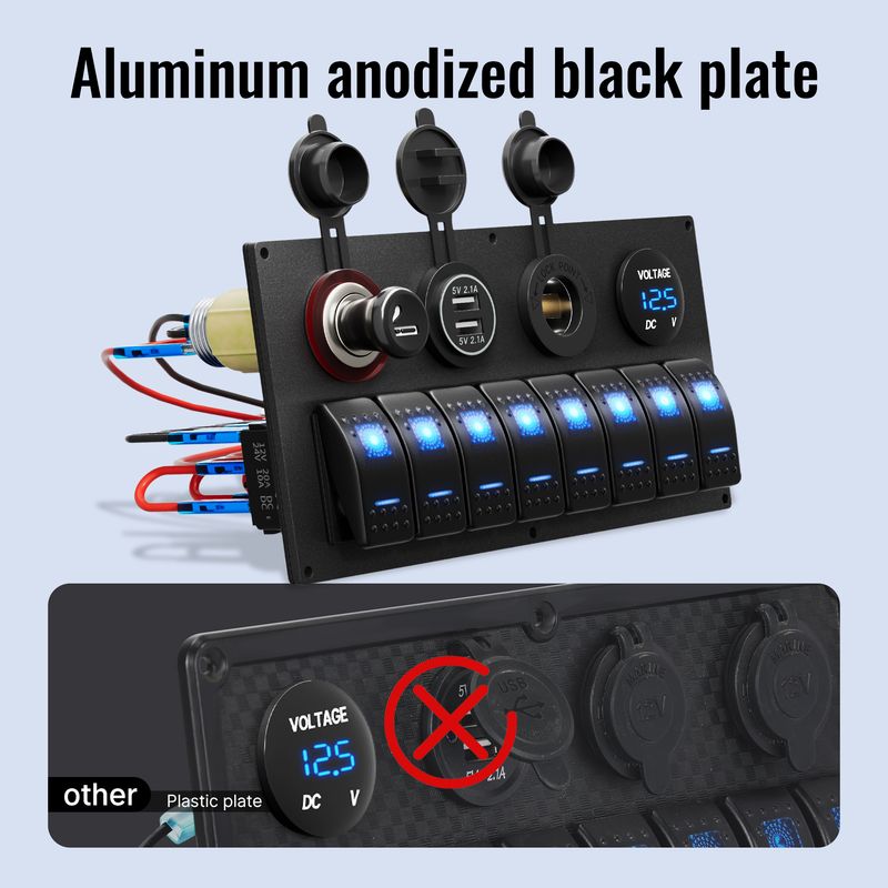 【Durable Panel】The plate of this 8 gang marine switch panel is made of anodized aluminum, which is stronger and more durable than other plastic plates.