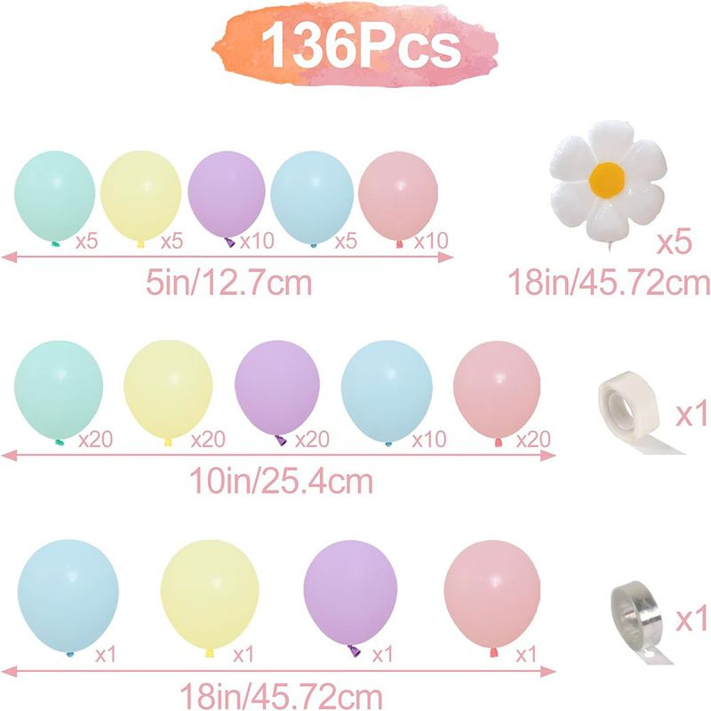 Daisy Balloon Garland Arch Set 136 Pieces White Fashionable Flowers Macaron Pink Yellow Blue Purple Balloon Birthday Daisy Theme Wedding Two Fashionable Bohemian Party Decoration