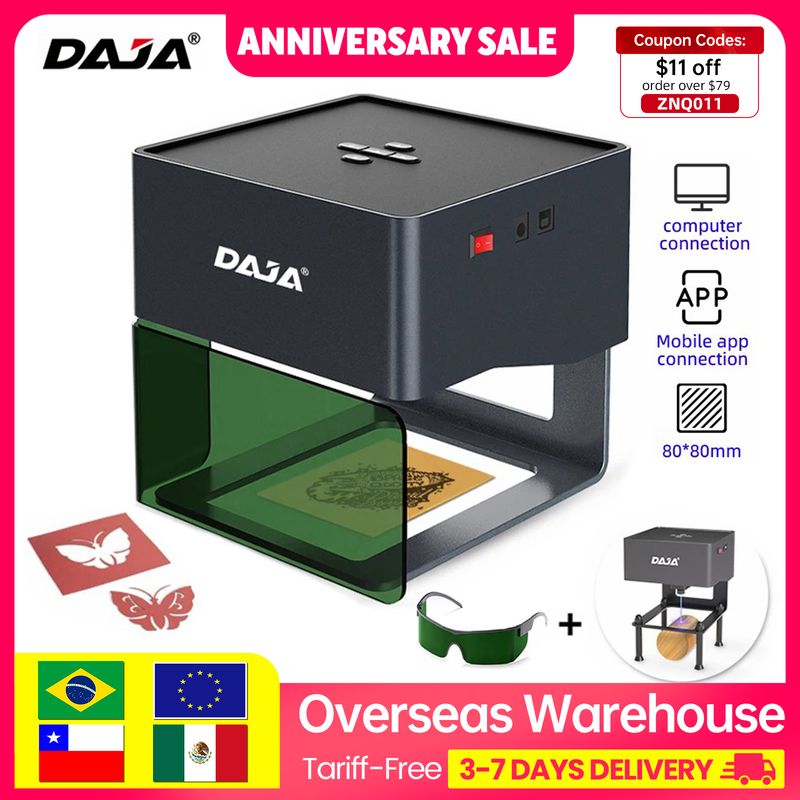DAJA DJ6 Mini Portable Laser Engraver Diy Bluetooth Machine Painted Dog Tag Paper Leather Wooden Plastic Logo CNC Machine