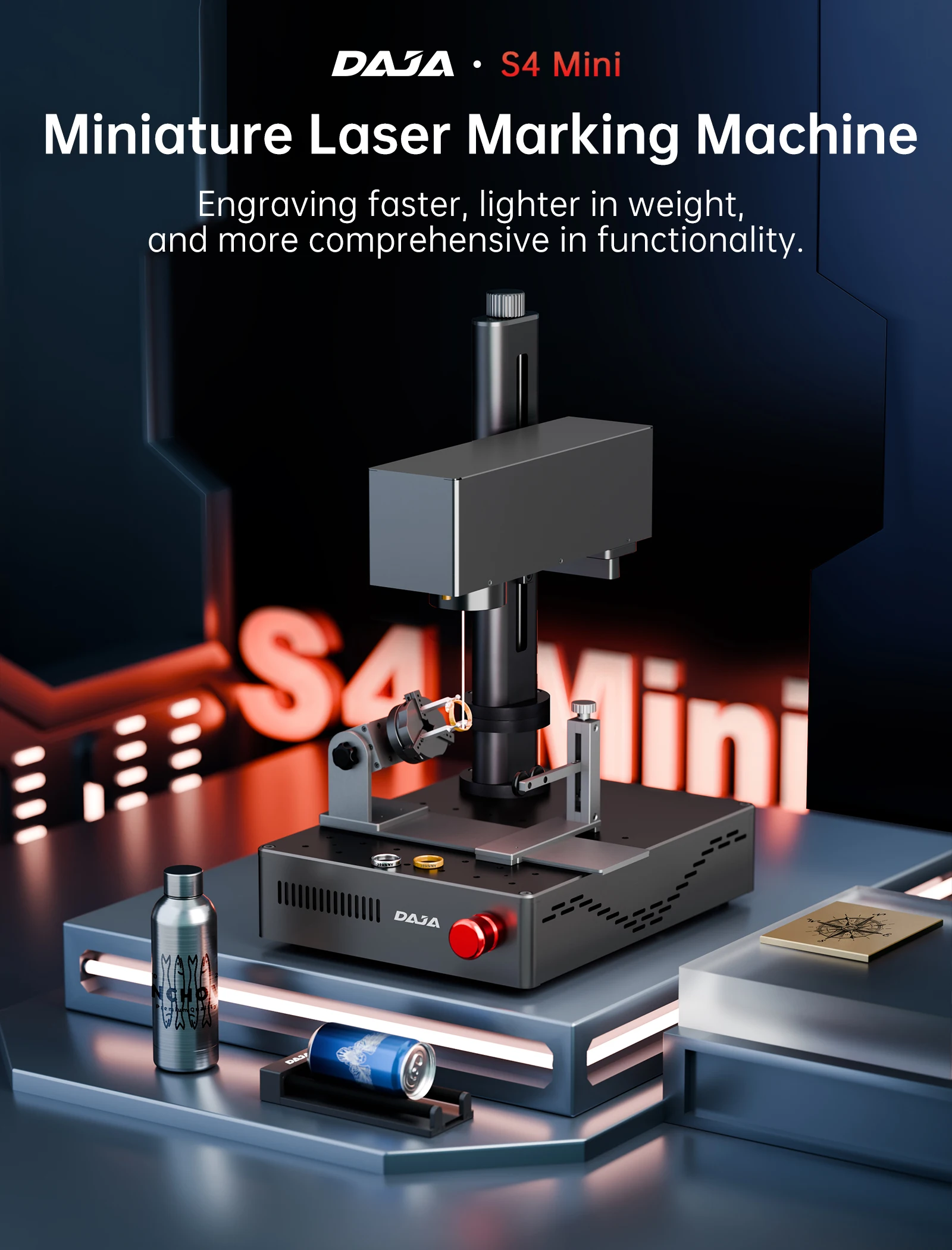 DAJA MINI Portable Fiber Laser Marking Machine High Precision Industrial Business 90*90mm for ALL Metal Jewelry Leather Plastic