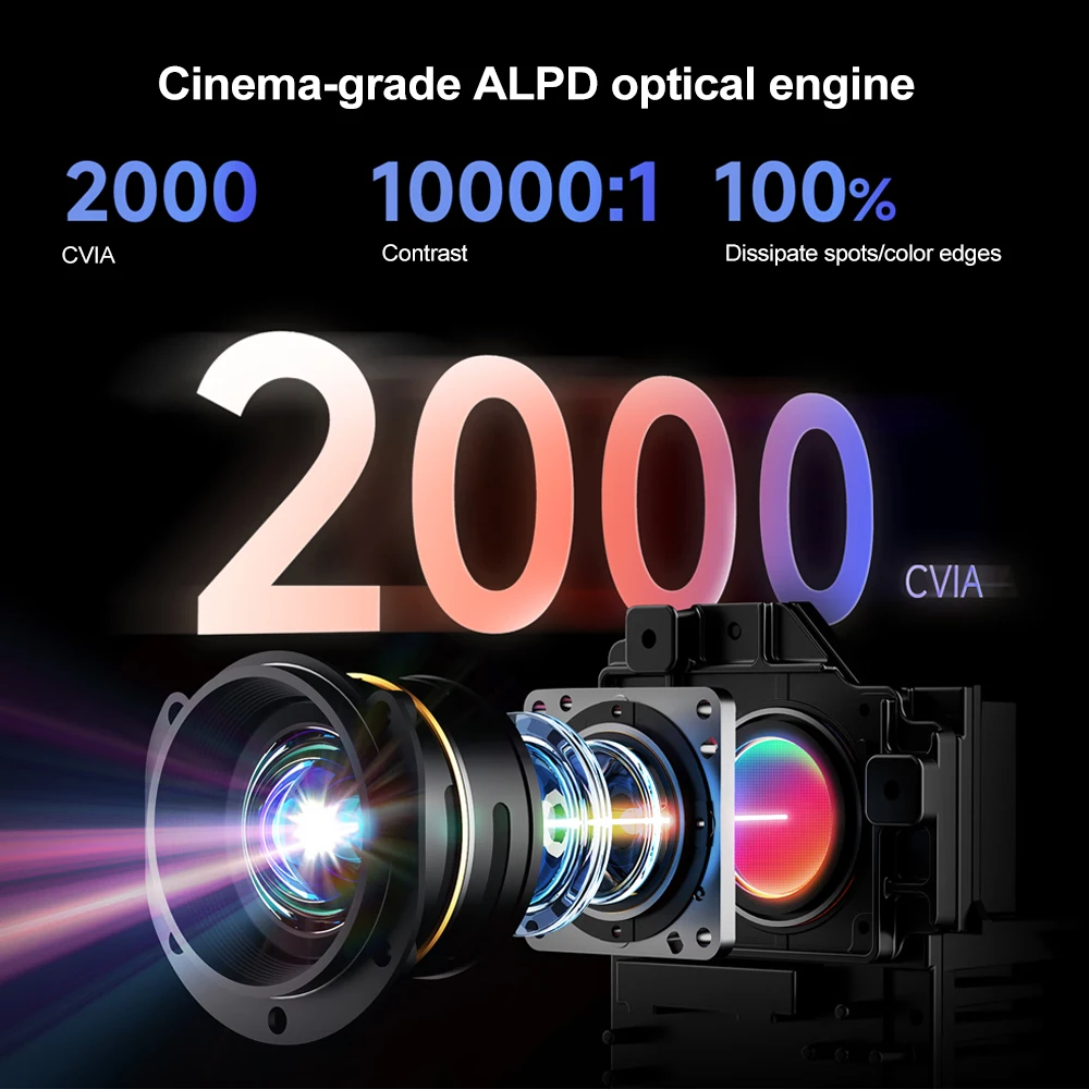 The highlight of the new Dangbei X5S Plus is the "five-fold lossless true 4K". Through the perfect combination of ultra-high brightness, ultra-high contrast, X super picture quality chip, HDR10+ and zero speckle technology, Dangbei X5S Plus adopts a new generation of cinema-level ALPD® optical engine, with an amazing brightness of 2000CVIA. This brightness level not only exceeds that of ordinary laser projections of the same level, but also keeps the picture clear and bright in bright environments. Whether it is day or night, you can enjoy colorful and detailed picture performance.