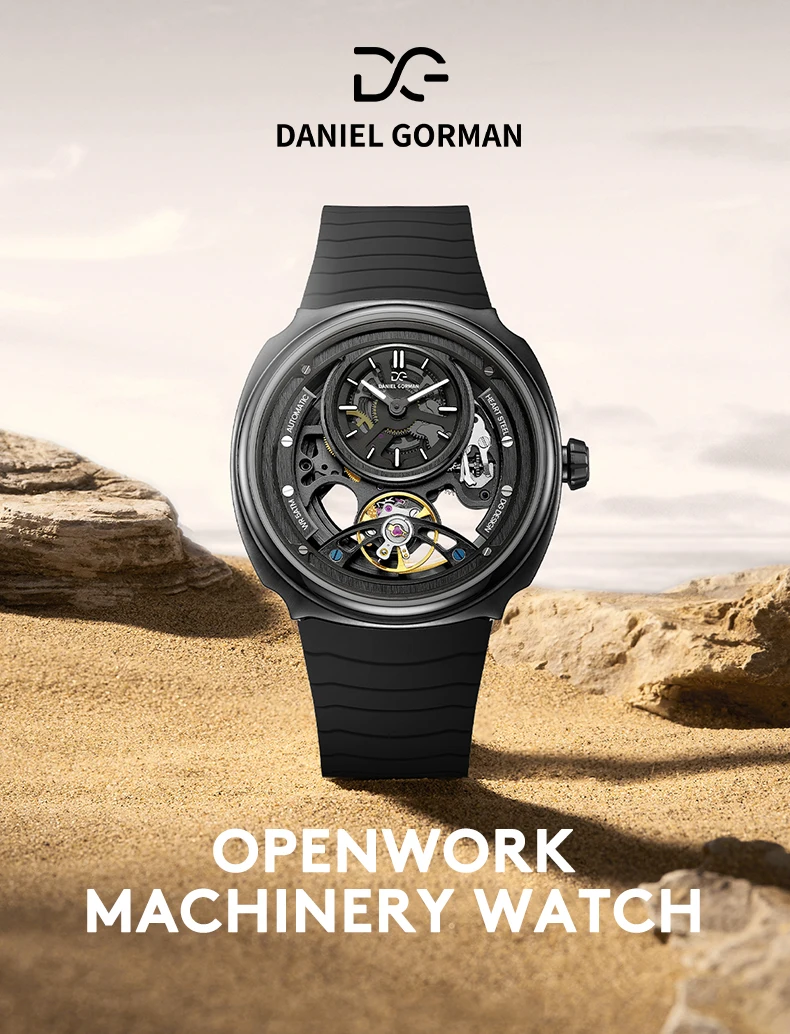 DANIEL GORMAN Men's Luxury Skeleton Automatic Mechanical Watch Waterproof Stainless Steel Luminous Wristwatch