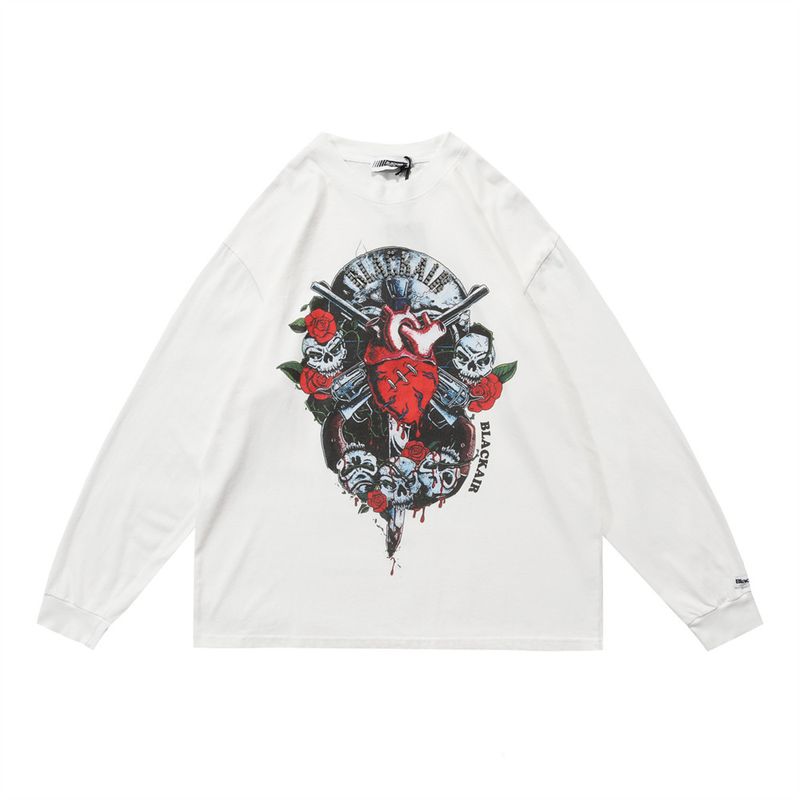 Dark Demon Skull Long Sleeve T-Shirt Men White 2XL
