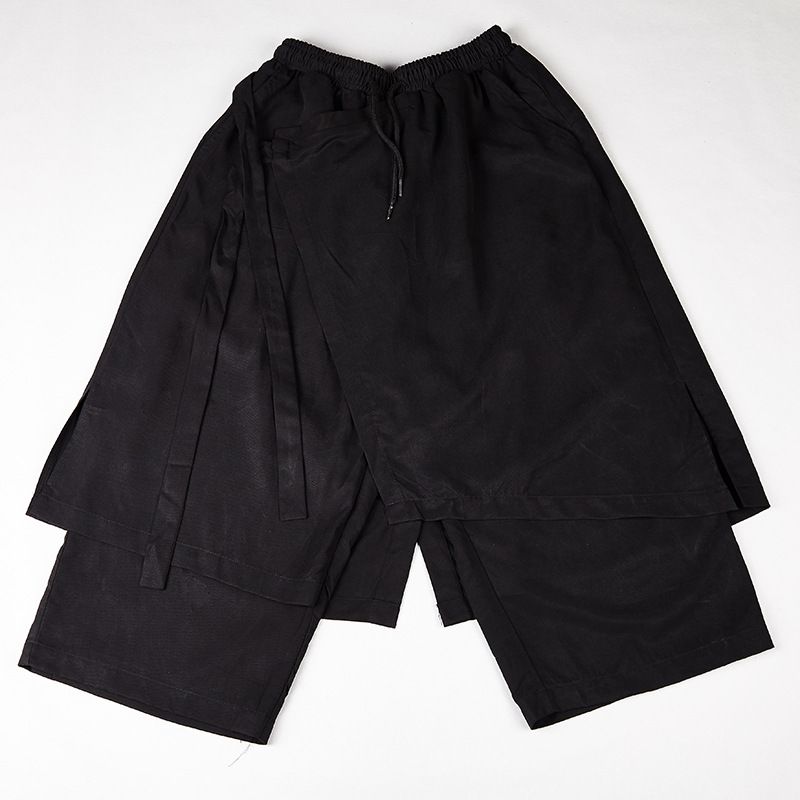 Dark Series Streetwear Fashion Hakama Patchwork Creative Cropped Trousers Men Oversized Couple Straight Casual Pants Black L