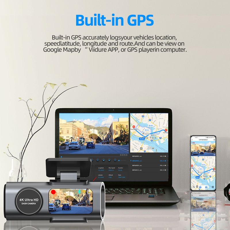 Based on powerful Novatek 96670 CPU, the dual lens simultaneously capture.front and rear at 3840*2160@25fps+1920*1080P@25fps.