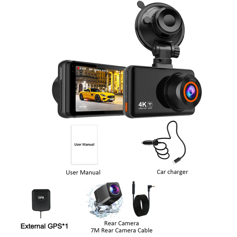 4K Front and 1080P Rear Dash cam (Optional)