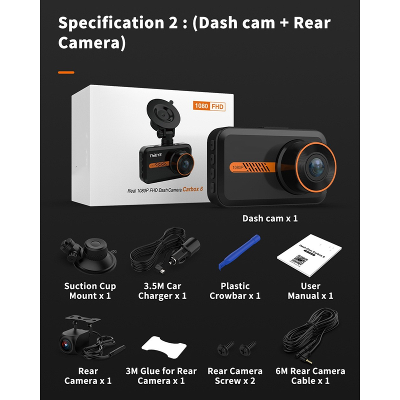 Dash Cam Front And Rear Car Camera Dual Dashcam 1080P FHD Specification2