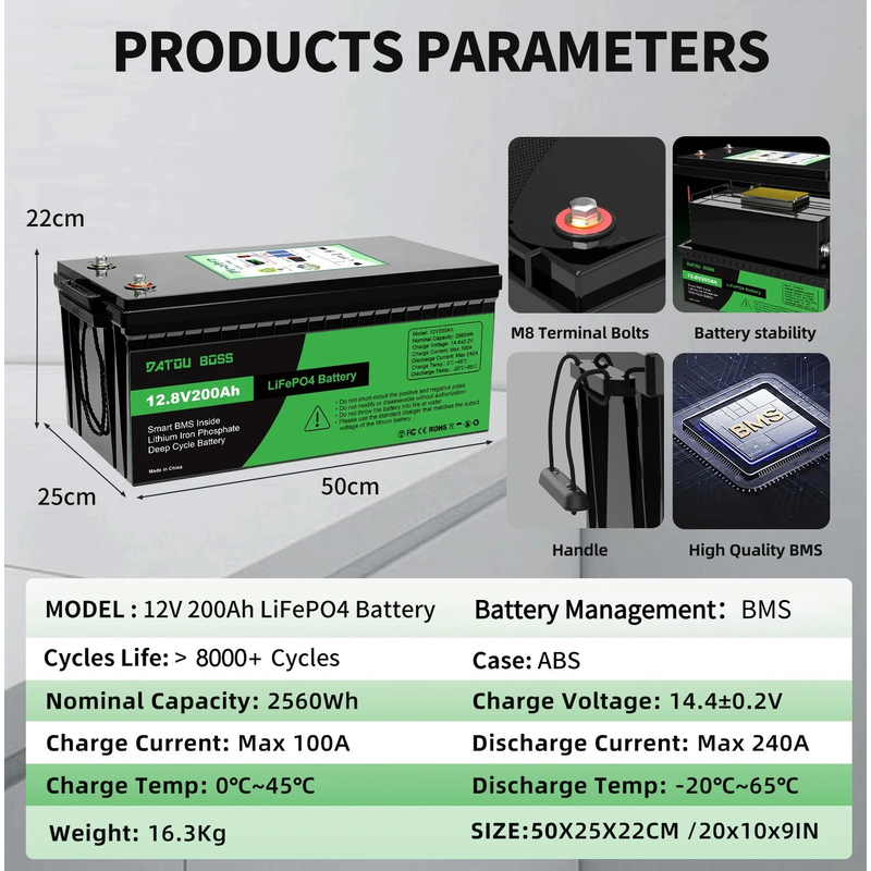 ● 120A~200A continuous discharge – Runs heavy-duty appliances like air conditioners & power tools effortlessly.