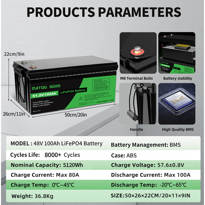 â—Ź Grade-A LiFePO4 cells | 8000+ cycles (80% capacity)