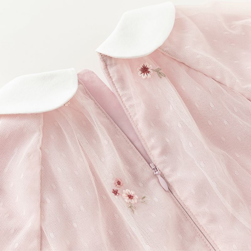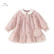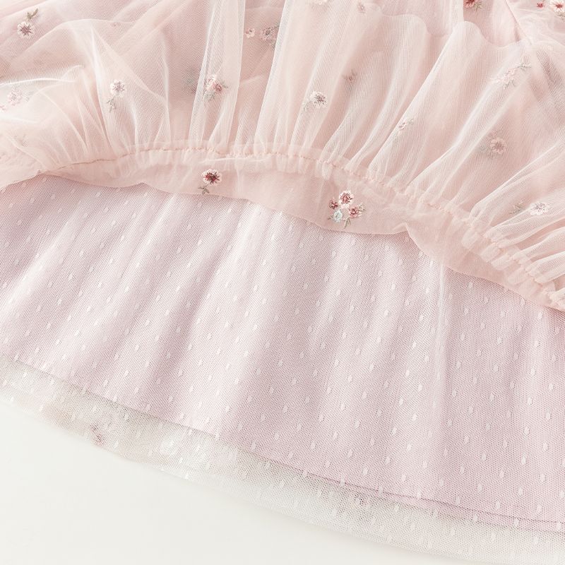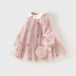 Dave Bella Mesh Floral Princess Dress Girls Baby Children 2025 New Autumn Sweet Charm Pink Fashion Long Sleeved Dress DB3242681