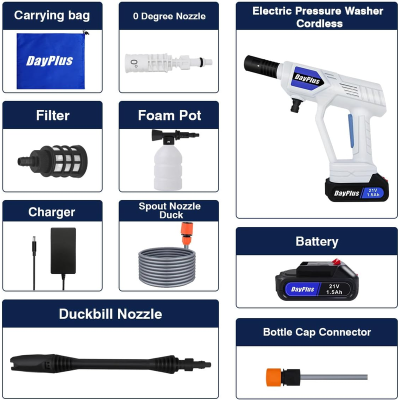 DayPlus Electric High Pressure Washer Rechargeable Car Wash Gun Cordless Electric Water Gun Foam Machine for Makita 24V Battery