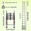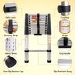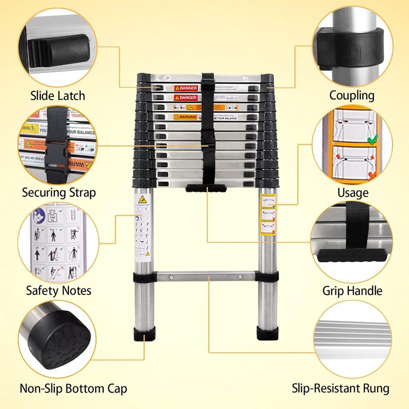 Multi-purpose telescopic ladder 3.8 m Extension ladder Height adjustable with non-slip feet Stainless steel telescopic ladder 330 LB Load capacity