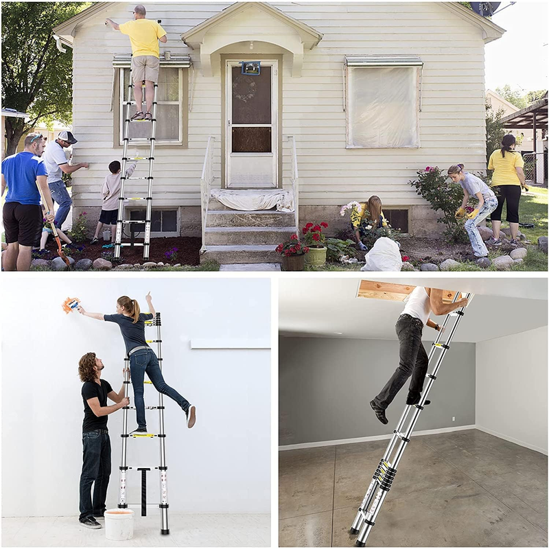 Multipurpose Telescoping Ladder 12' 12.5ft Extension Ladder Height Adjustable with Non-Slip Feet Stainless Steel Telescoping Ladder 330LB Load Capacity