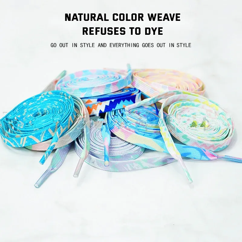Dazzling Blue Shoelace Flat Shoelaces for Sneakers Colorful Gradient Stripe Tie-dye Shoe Laces Personality Rope for Men Woman