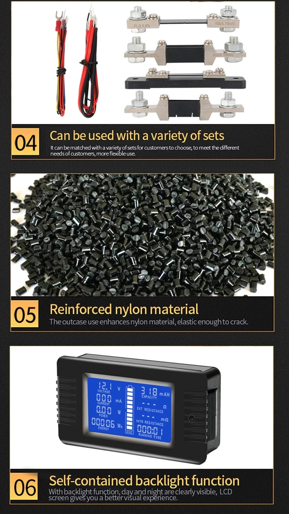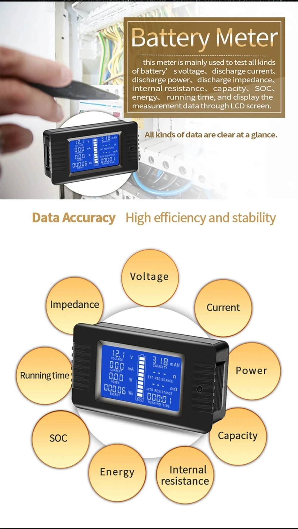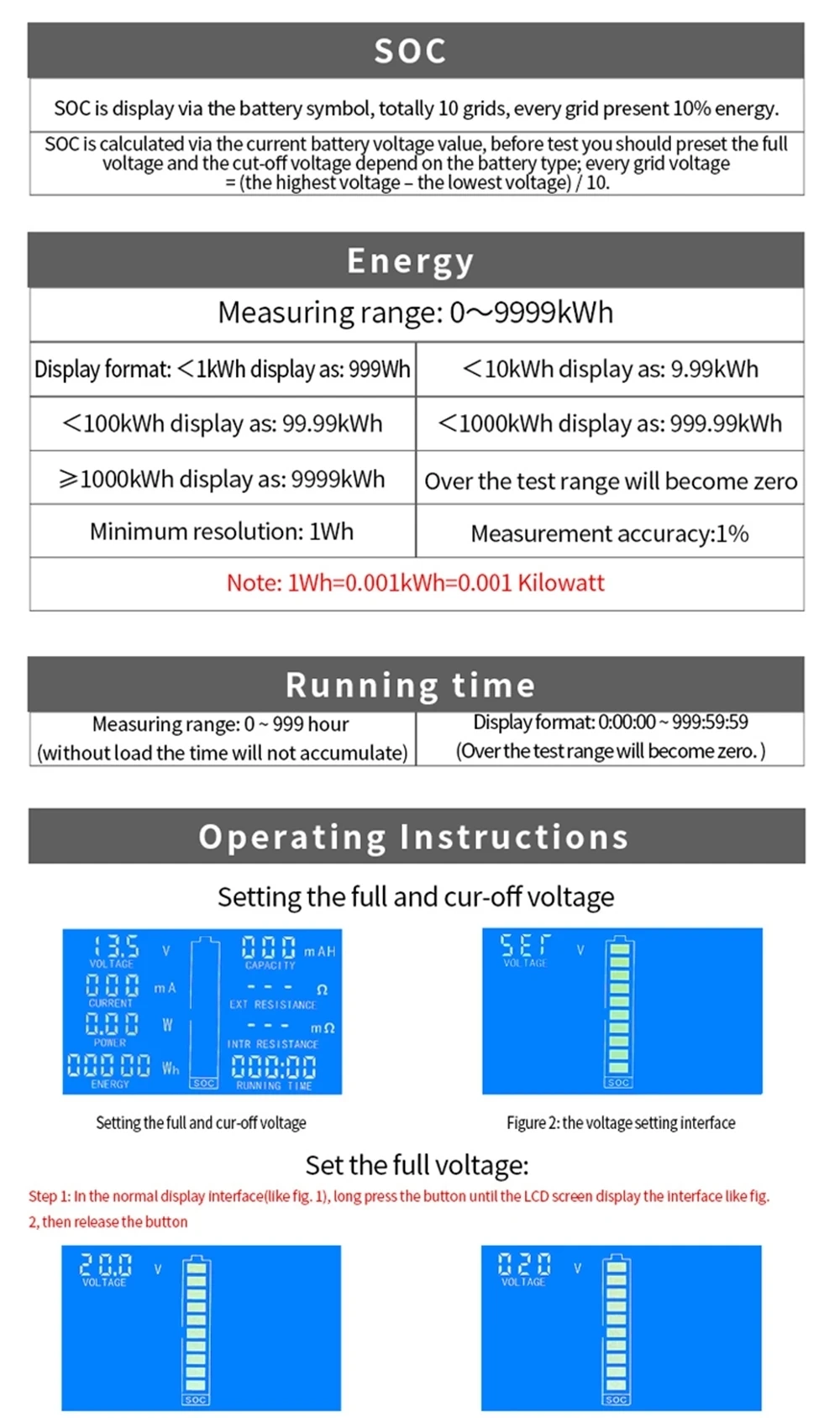 6 Capacity Measuring range: 0-1000AH