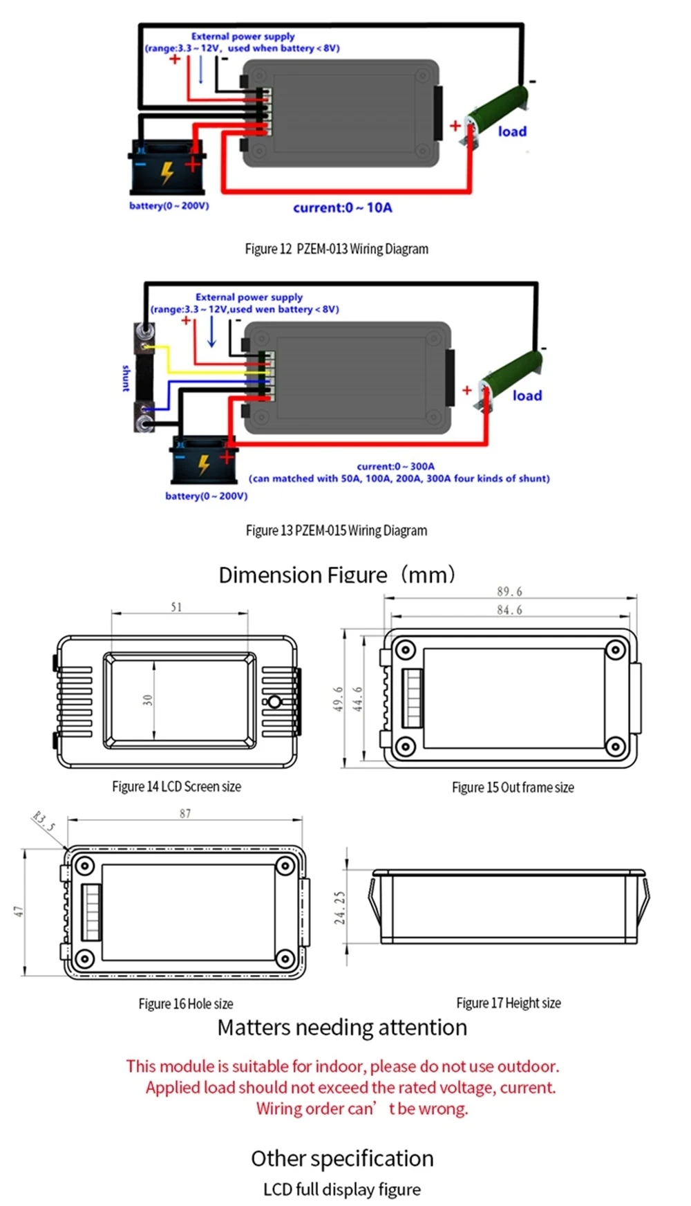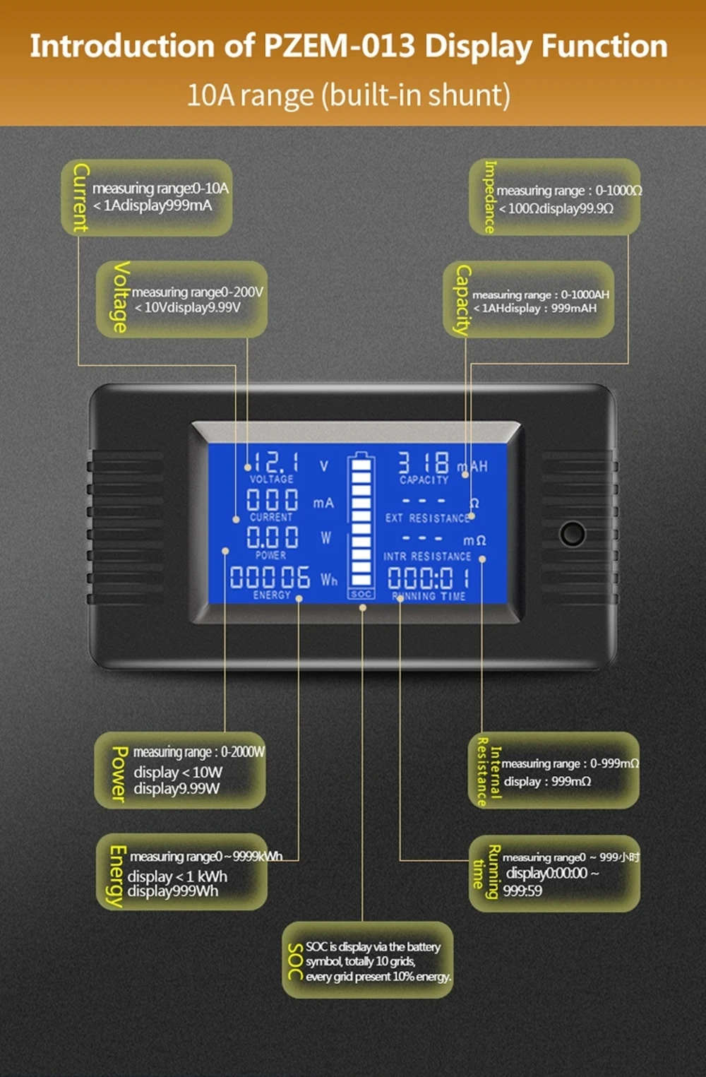 2. Current Measuring range: 0-10A(built in shunt)