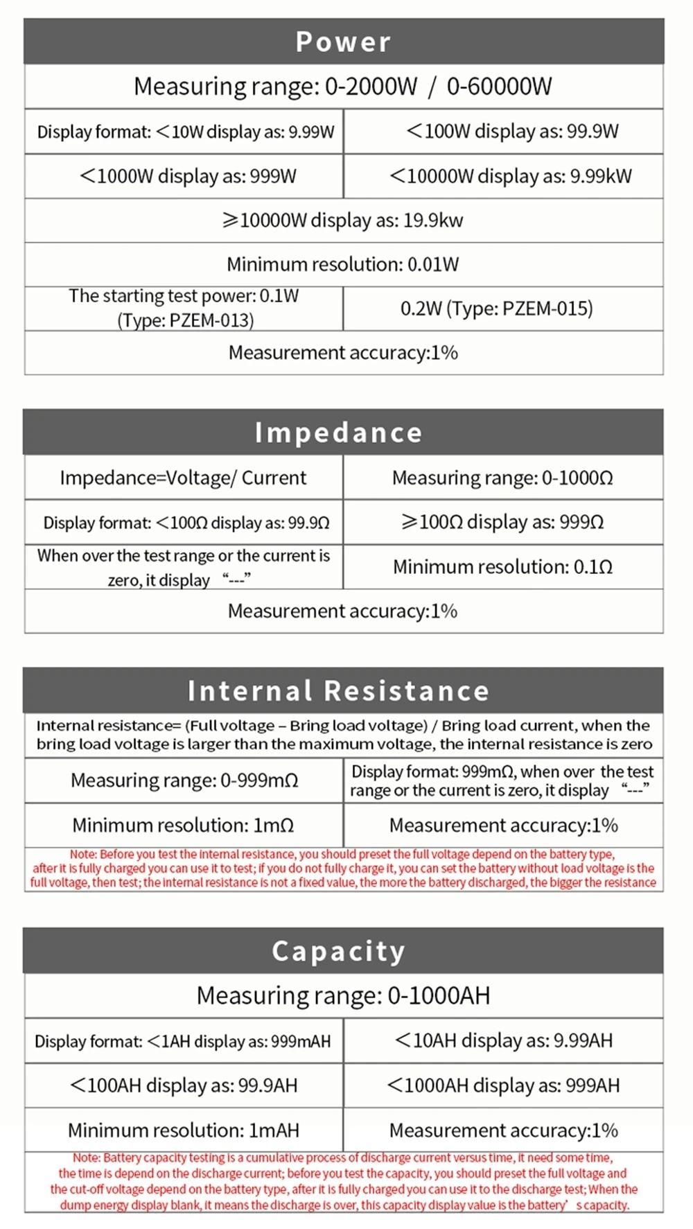 3. Power Measuring range: 0-2000W (10A) 0-60000W(0-300A).